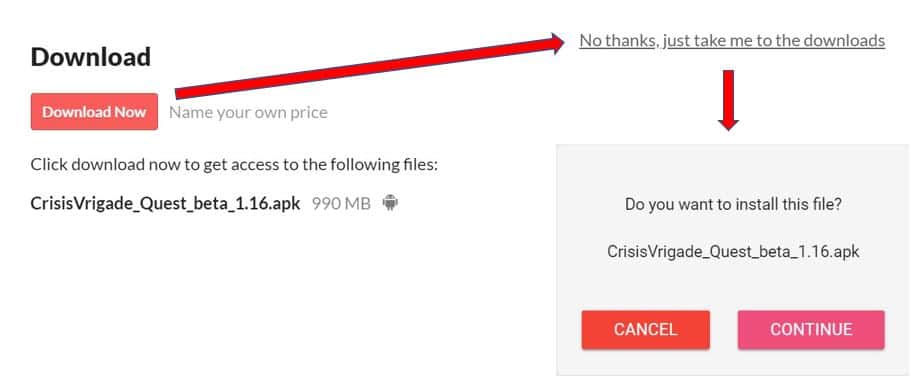 Après le descriptif du jeu, vous trouverez des informations telles que la version de l’application et sa taille. Lancez le téléchargement et, comme pour de nombreuses applications, vous avez la possibilité de faire un don au développeur. Pour cet exemple, nous choisissons de passer directement au téléchargement. Confirmez, pour finir, que vous souhaitez bien installer l’application directement.