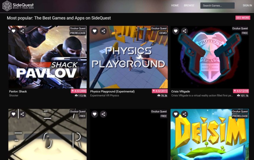 Autant le dire tout de suite, sur la plateforme SideQuest on trouve de tout. Du bon, du très bon, mais aussi du mauvais ou du très mauvais. C’est un peu le but de SideQuest ; tout le monde peut proposer ses développements. Il n’est d’ailleurs pas rare d’y trouver des applications pleines de bogues : en version bêta ou même alpha.