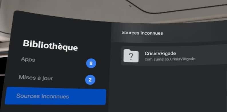 Tous les jeux ou applications que vous achetez via le store Oculus, se trouve dans votre bibliothèque sous la rubrique Apps. Ce n’est pas le cas pour ceux que vous installez via SideQuest. Ceux-ci sont disponibles dans la rubrique Sources inconnues.