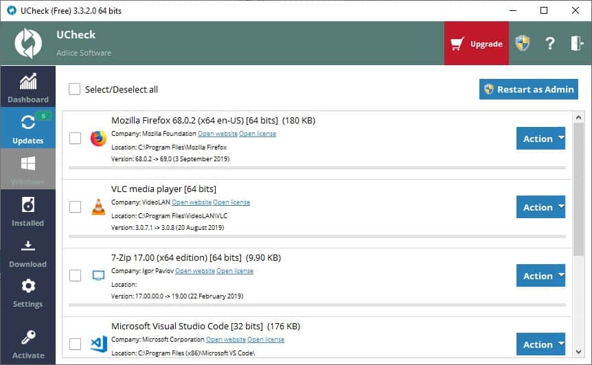 - UCheck, la solution complète : UCheck est un logiciel freemium développé par Adlice Software, proposant une solution simple pour actualiser l’ensemble de vos applications en seulement deux clics.