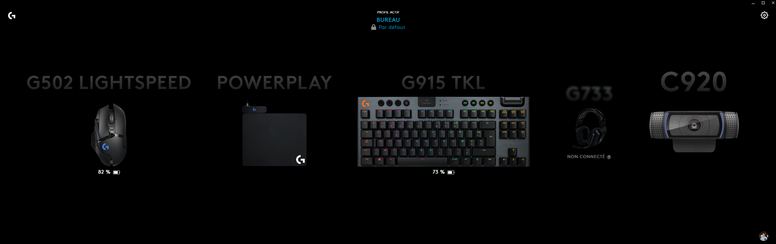 Logitech propose de gérer tous les périphériques de la marque via le logiciel G-Hub qui vous donnera accès aux réglages de tout votre équipement. Et je me suis rendu compte qu’avoir un full setup (clavier, souris, casque) d’une seule et même marque, ça a du bon. Pas besoin d’installer 36 programmes. Un seul suffit. Et au programme : paramétrage du RGB Lightsync, attribution des touches, programmation de profils gaming … Bref, vous avez la possibilité d’en faire ce que vous voulez de ce Logitech G915 TKL, grâce à G HUB.