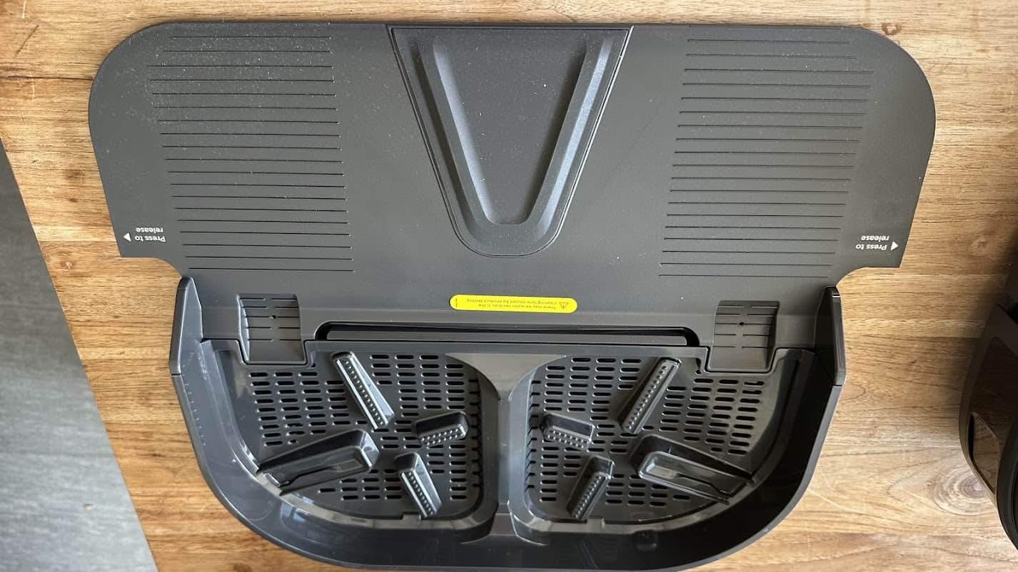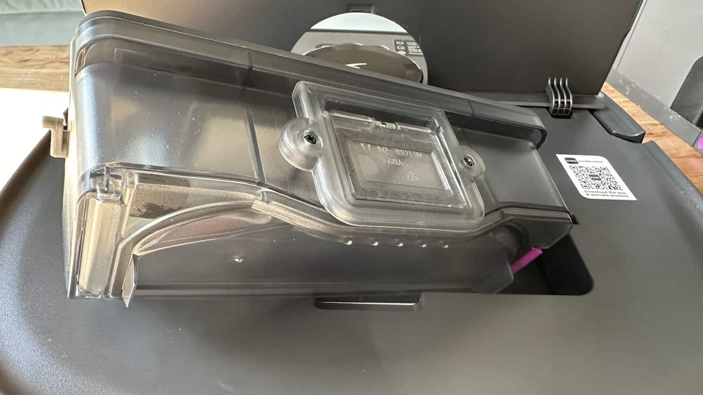 Sa base, d’ailleurs, dispose d’un énorme sac à poussières de 3 L et de deux réservoirs pour les eaux propres et les eaux usées. Il est d’ailleurs possible de détacher la partie sous le robot afin de faciliter le nettoyage manuel nécessaire quelques fois par mois.