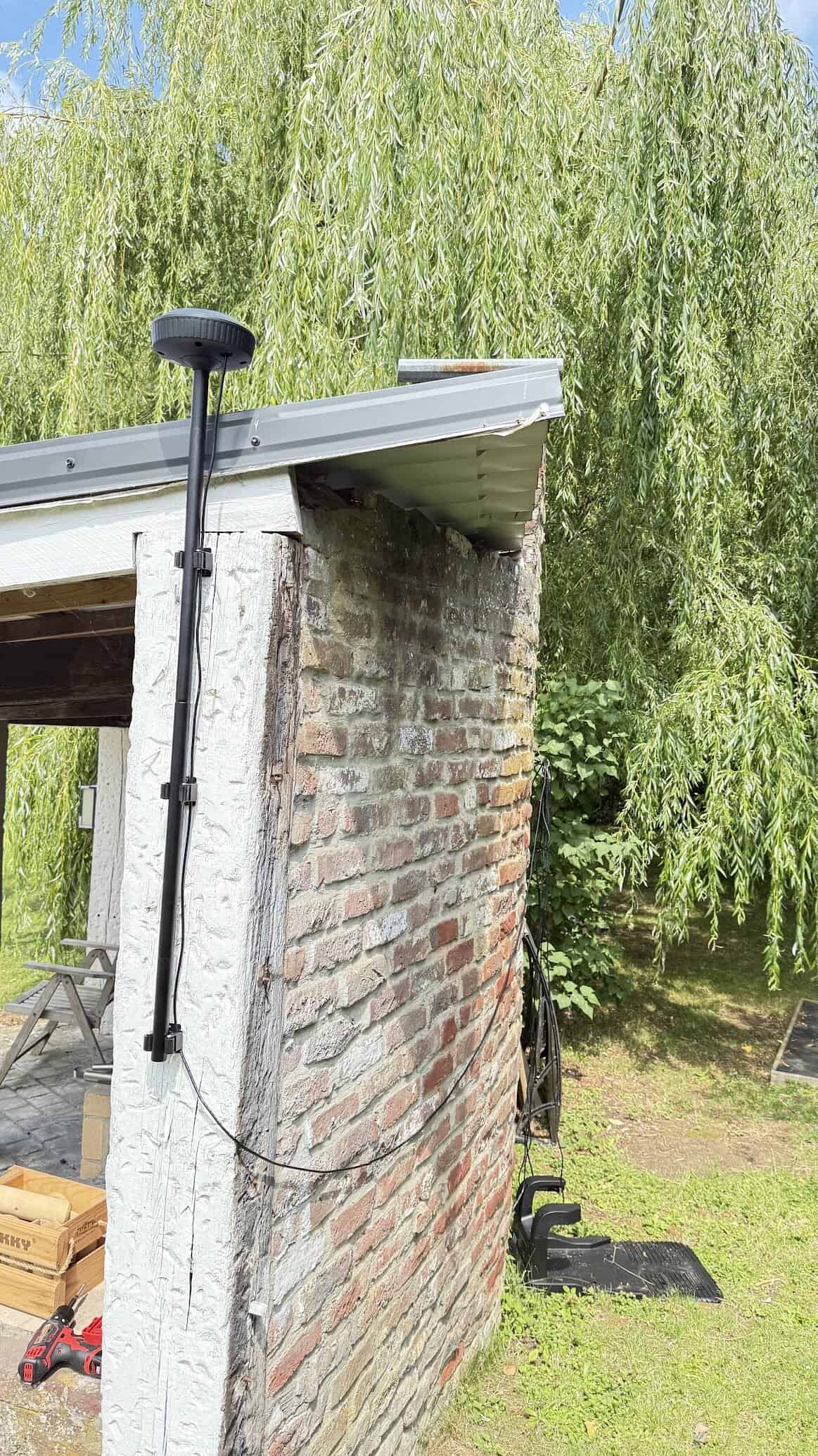 C’est franchement bien plus simple à installer que le câble enterré . Il faut alors placer une espèce de mat avec l’antenne, ce qui permet bien de capter les satellites GPS