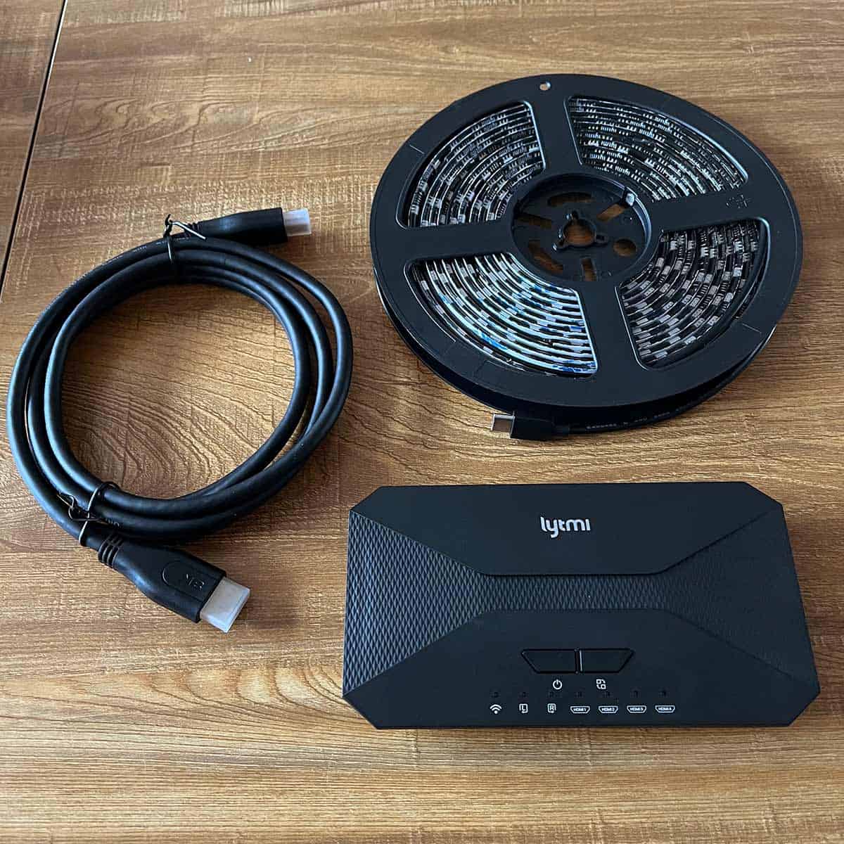 Étant donné qu’il existe pas mal de kits Ambilight aux prix assez variables, commençons par signaler que le Lytmi Fantasy 3 est actuellement disponible au tarif de 219 euros dans sa version 55-60 pouces. Cela fait donc de lui un boitier plutôt haut de gamme si on le compare à la concurrence. Concrètement, cela se traduit par une qualité impeccable puisque l’expérience se veut précise et réactive. C’est d’autant plus appréciable que ce kit est très facile à installer et qu’il est entièrement « Plug and Play ». Notons d’ailleurs que la boîte contient tout ce qu’il faut pour procéder à l’installation. On y retrouve donc :