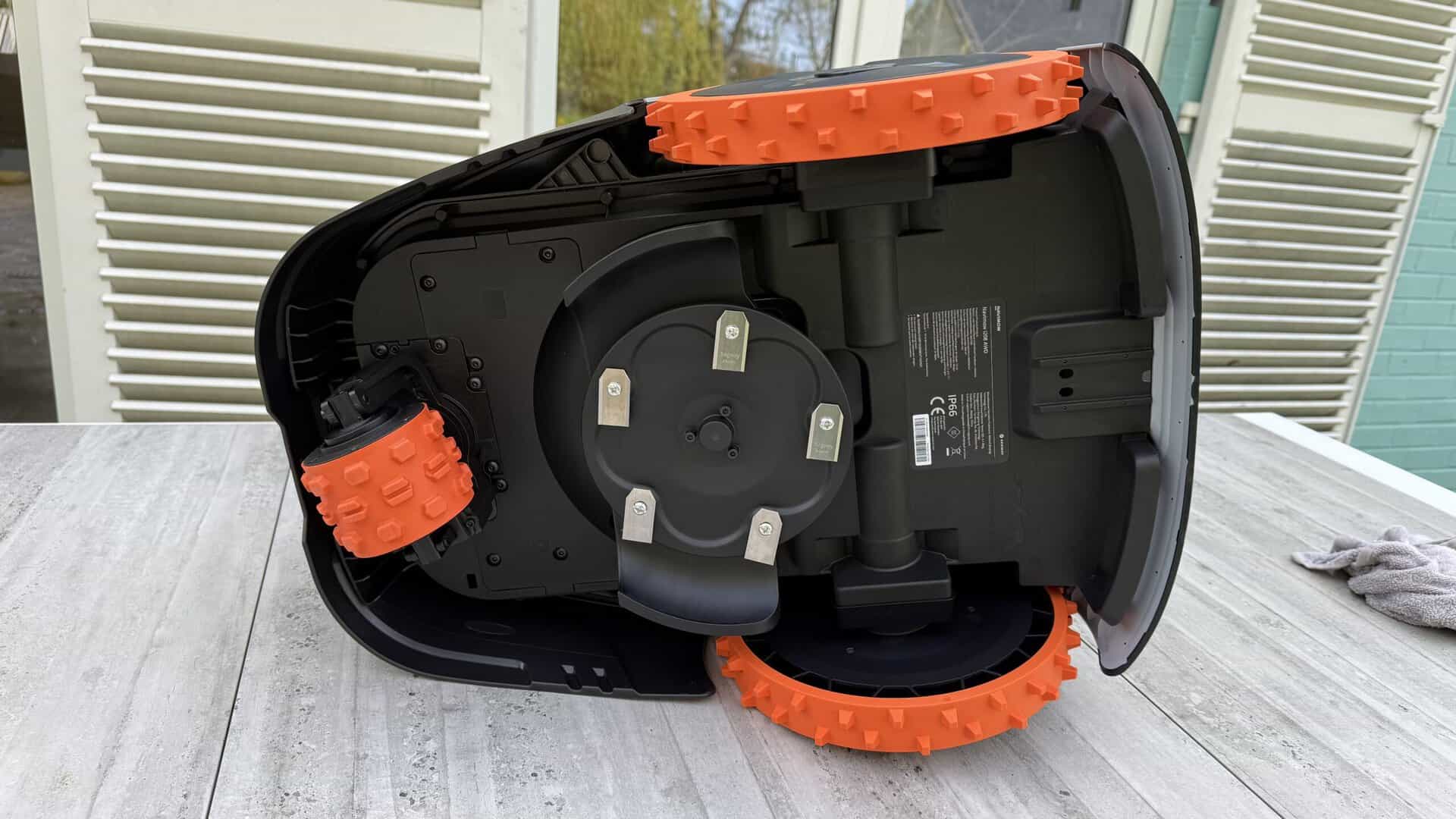 Dès le déballage, la Navimow i2 AWD impose son style. C’est un robot que je trouve très joli et résolument moderne, loin des blocs de plastique noirs et basiques qu’on voit souvent. Son design est soigné, avec des lignes fluides et des matériaux robustes au toucher. J’ai tout de suite senti la qualité de fabrication, notamment au niveau des assemblages qui paraissent solides.
