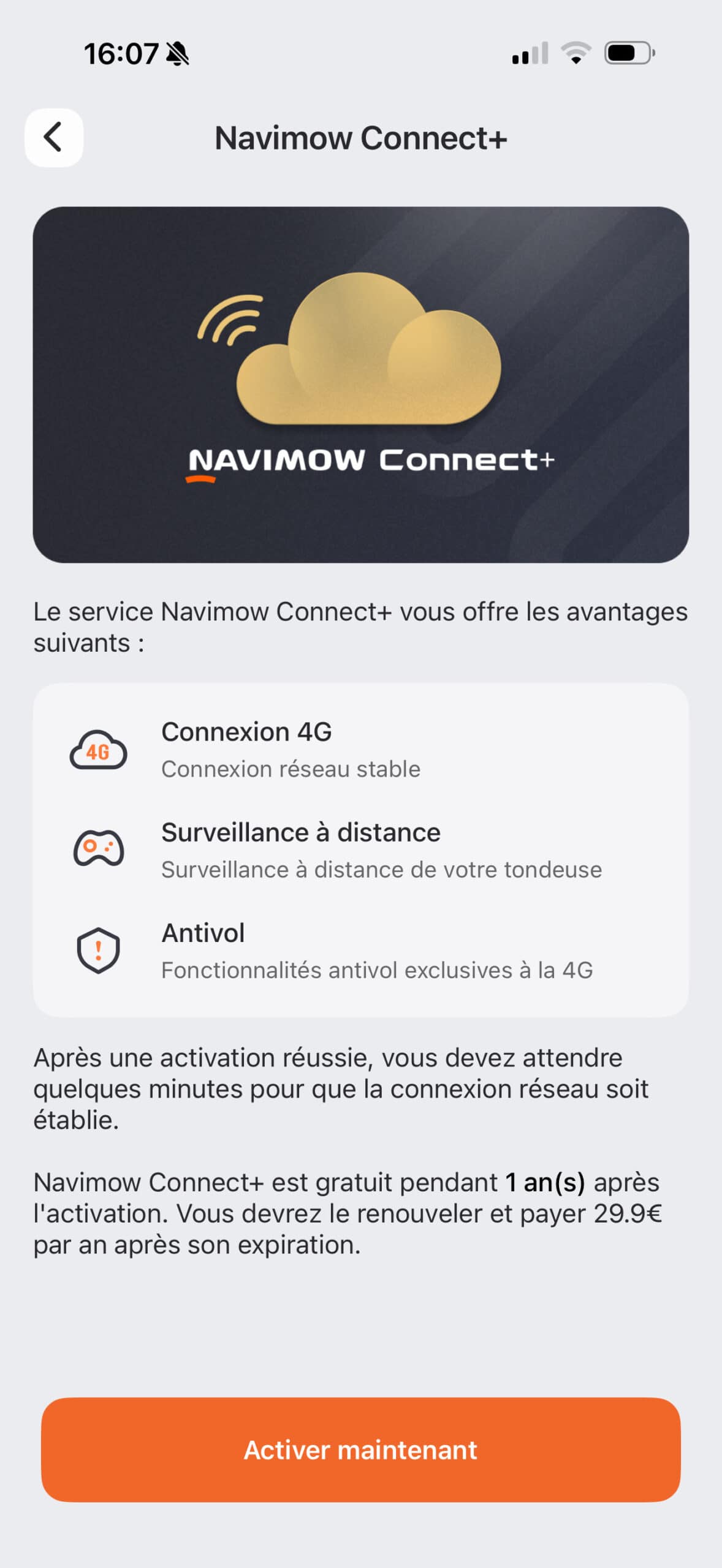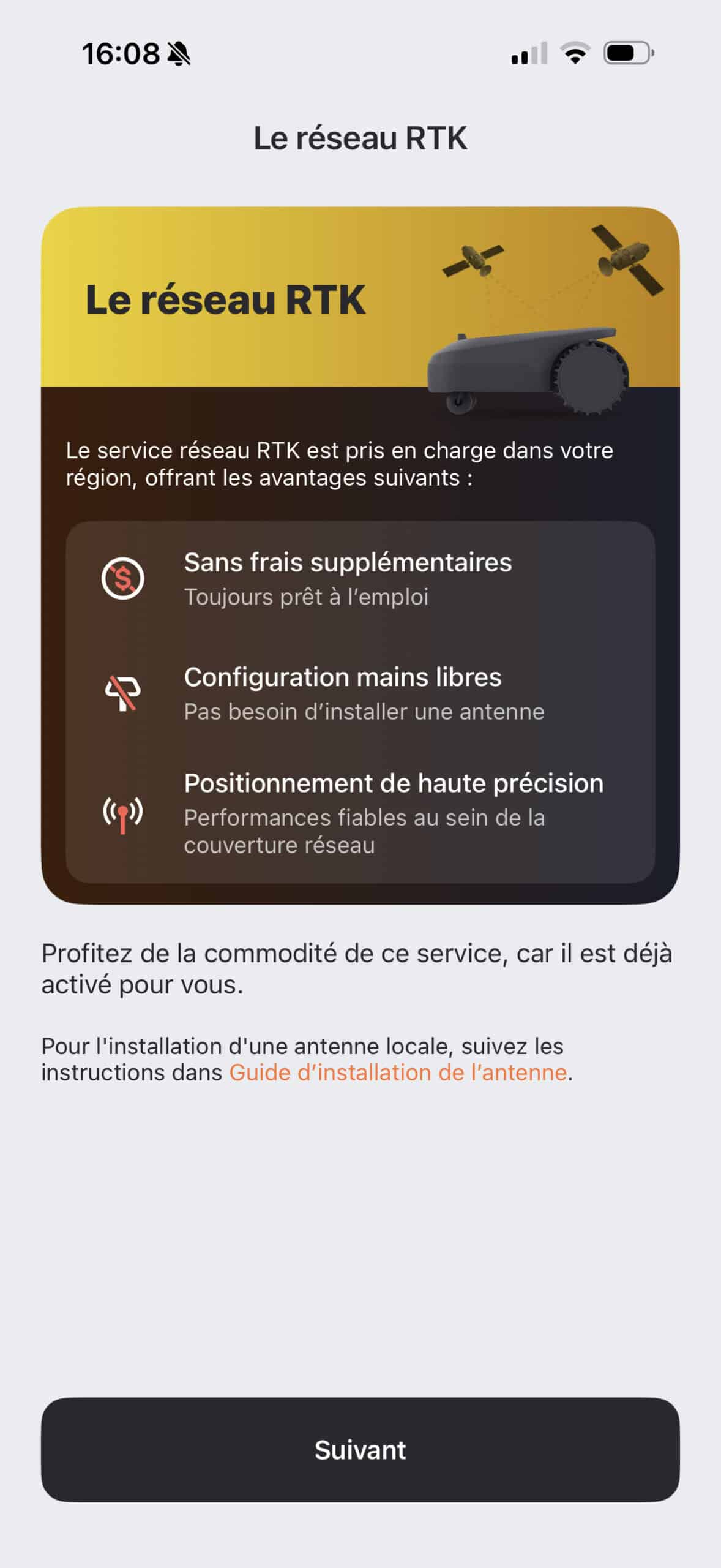 Le gros avantage de cette Navimow i2 AWD, c’est son fonctionnement sans fil périmétrique. Plus besoin d’enterrer des mètres de câble ! Pour se repérer, elle utilise une antenne RTK. Vous avez deux options : soit installer une antenne physique sur un mât dans votre jardin, soit utiliser le réseau RTK via la 4G de la tondeuse, moyennant un abonnement annuel. Pour ma part, j’ai opté pour cette seconde solution car je préfère éviter d’ajouter des installations visibles dans mon jardin. J’ai tout de même dû rapprocher la station de charge de la maison, car ma première idée de placement, derrière mon barbecue, ne permettait pas une réception suffisante du signal. C’est un détail important à noter pour l’installation.