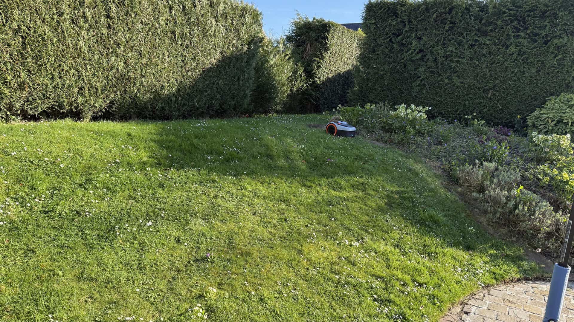 Sa caméra VisionFence est une autre fonctionnalité géniale. Elle ne sert pas seulement à éviter les obstacles, mais elle améliore les trajectoires initiales. Elle apprend de la réalité du terrain au fil de ses passages pour optimiser ses trajets futurs. J’ai remarqué qu’elle passe sur les racines qui dépassent sans aucun souci et ne se bloque jamais. Elle prend les pentes en diagonales, et tout semble pensé pour qu’elle puisse se faufiler partout. L’application propose même de créer des dessins dans sa pelouse ou de définir des zones d’évitement temporaires pour préserver la biodiversité, par exemple. Et bien sûr, je l’ai programmée pour tondre en journée (en Belgique, c’est maintenant illégal la nuit), ce qui est crucial pour éviter de blesser les hérissons et les petits animaux nocturnes, surtout qu’elle sait les détecter si besoin.