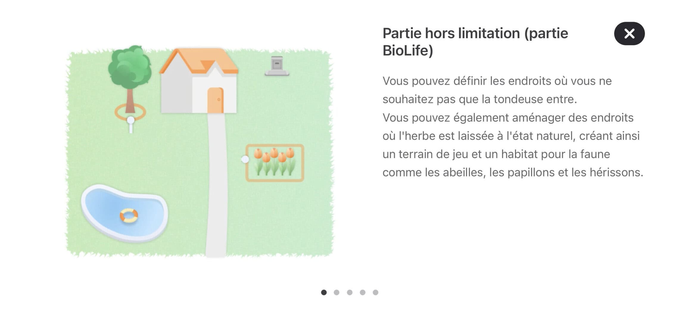 | Options créatives | Navimow Access (motifs de tonte personnalisés) |