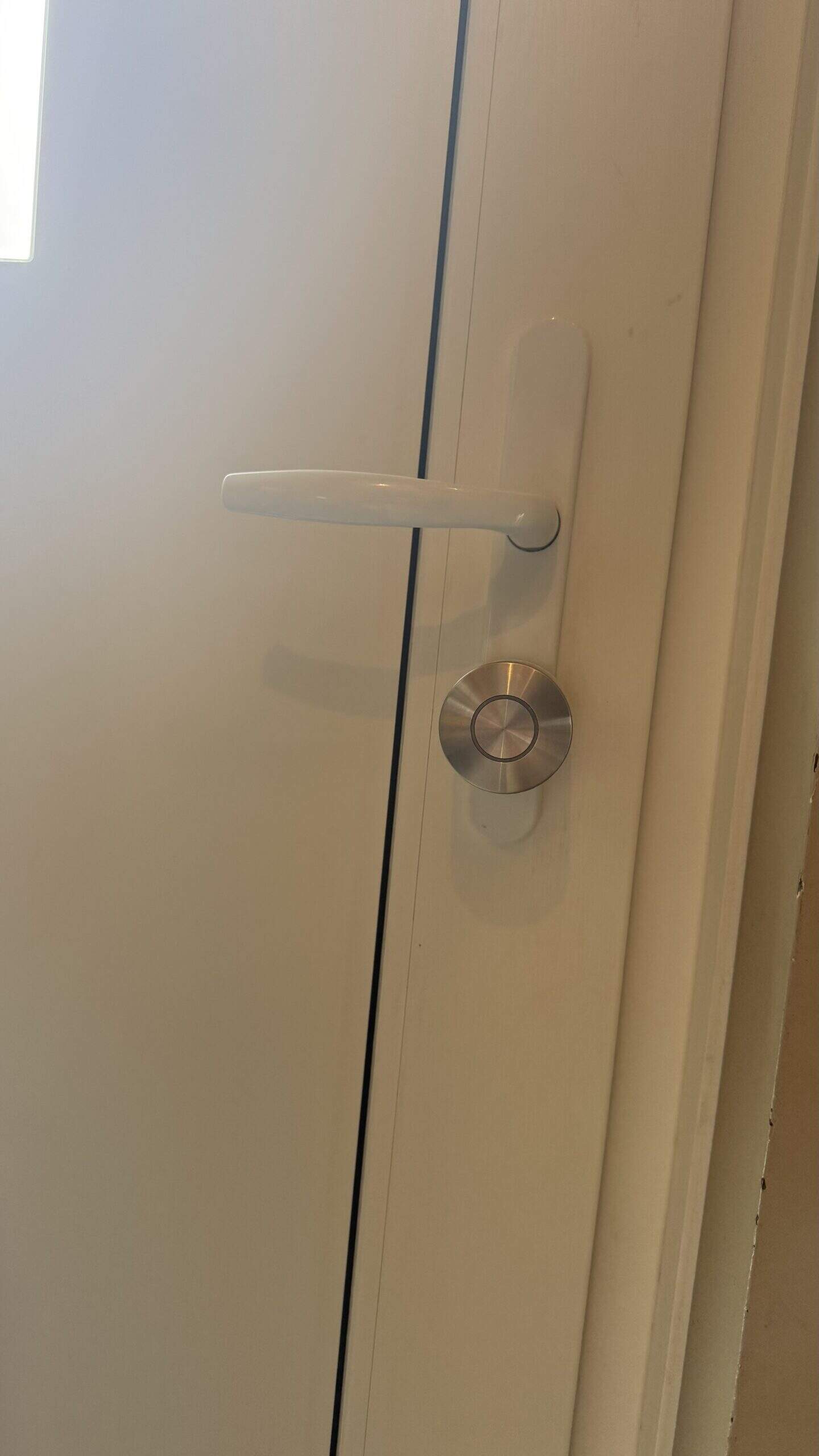 Une fois le cylindre en place et la Smart Lock fixée, la calibration via l’application se fait en un clin d’œil. J’ai une porte avec une serrure simple à l’extérieur (sans poignée mobile), et Nuki gère cela parfaitement en proposant de “donner un coup de poignée” virtuel pour libérer le loquet.
