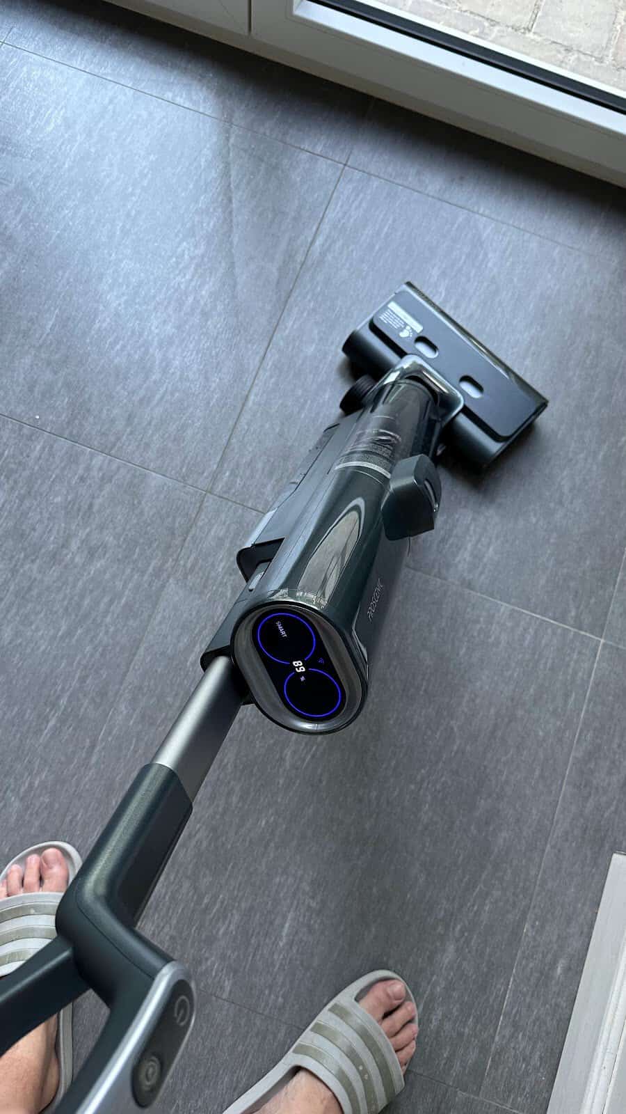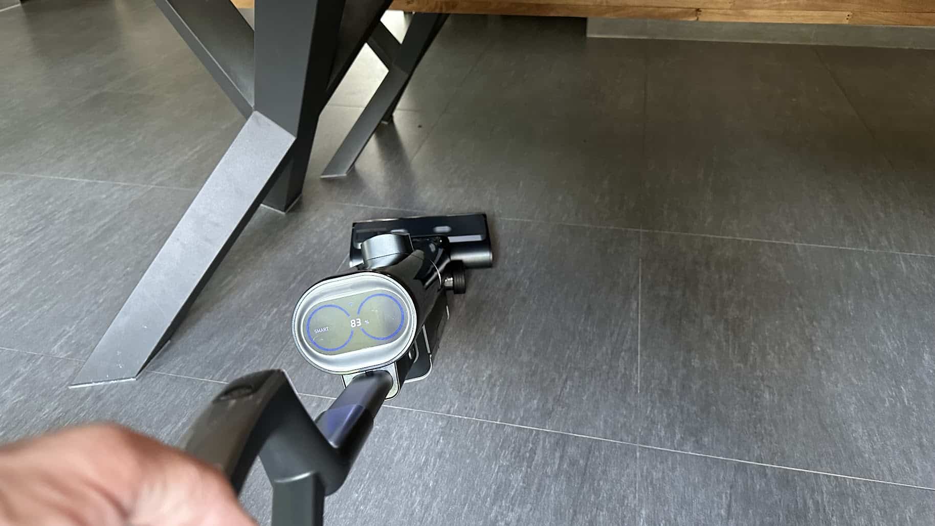 Pour le test pratique et bien, je me suis lancé sur le nettoyage de l’ensemble de mon rez-de-chaussée (105 m²) et pour ça je peux vous dire que j’ai terminé le nettoyage avec le réservoir d’eau propre presque vide et une batterie à 51 %. L’appareil est donc totalement taillé pour gérer mon habitation et devrait en conséquence convenir à quasiment tout le monde. Si c’est réellement grand chez vous : vous pouvez travailler avec plusieurs batteries et recharger de l’eau durant le processus de nettoyage.