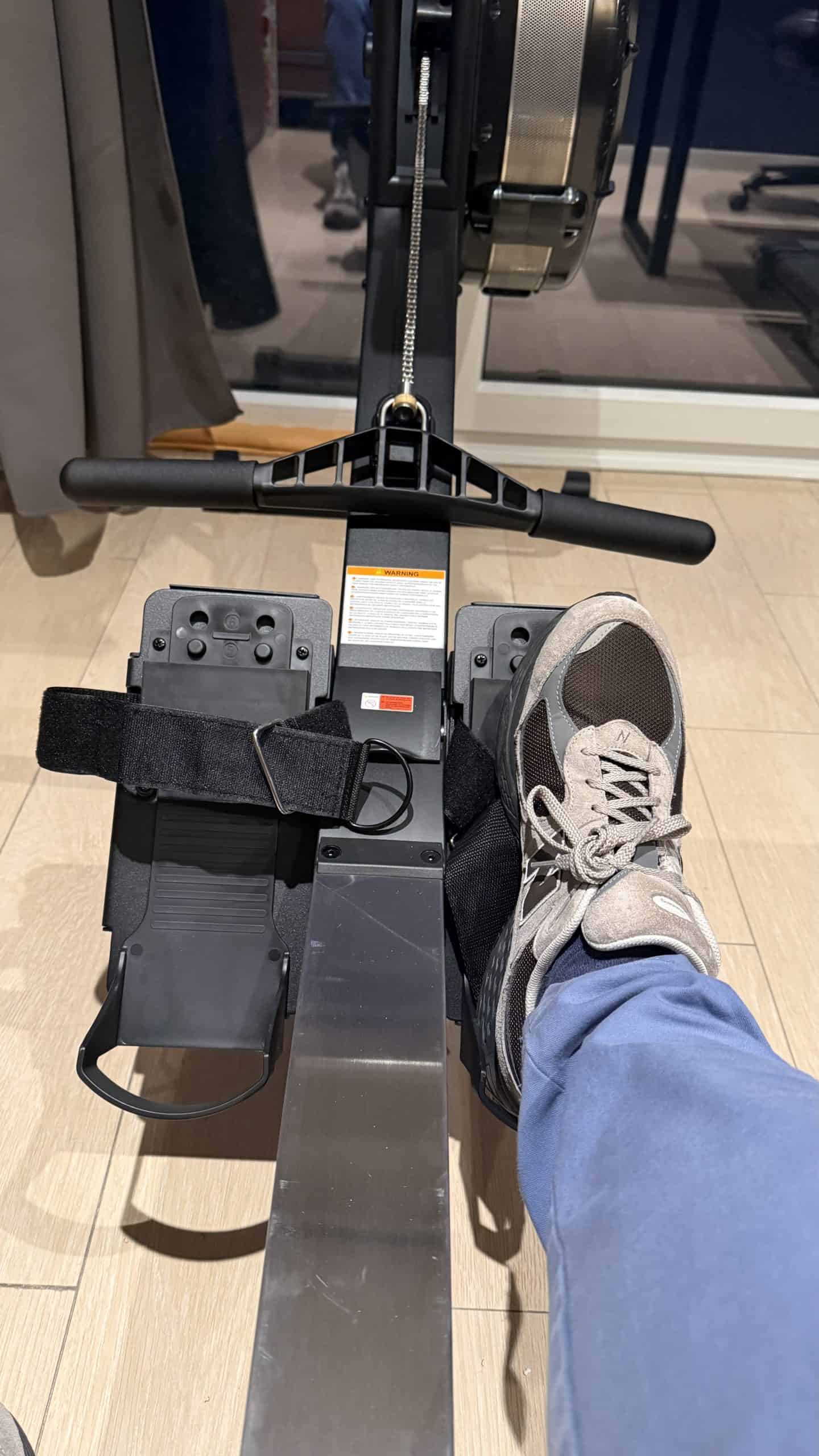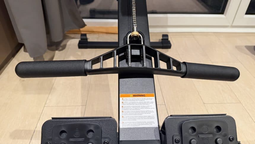En montant sur la machine, ma première crainte concernait la stabilité. Pesant 115 kg, j’ai souvent vu des appareils de fitness grand public grincer ou bouger dès qu’on y met un peu de puissance. Ici, rien ne bouge. La base est ancrée au sol et le rail ne fléchit absolument pas. J’ai eu une réelle sensation de solidité, même lors d’entraînements fractionnés intenses où j’ai tiré comme un sourd sur la sangle.