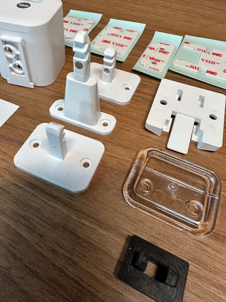 Pour installer la serrure, il y a deux options : avec des collants 3M double face, ou grâce à des vis à bois. J’ai opté pour la première solution et c’est enfantin : on dispose les scotchs double face sur les deux éléments de la serrure en prévision de coller le tout.