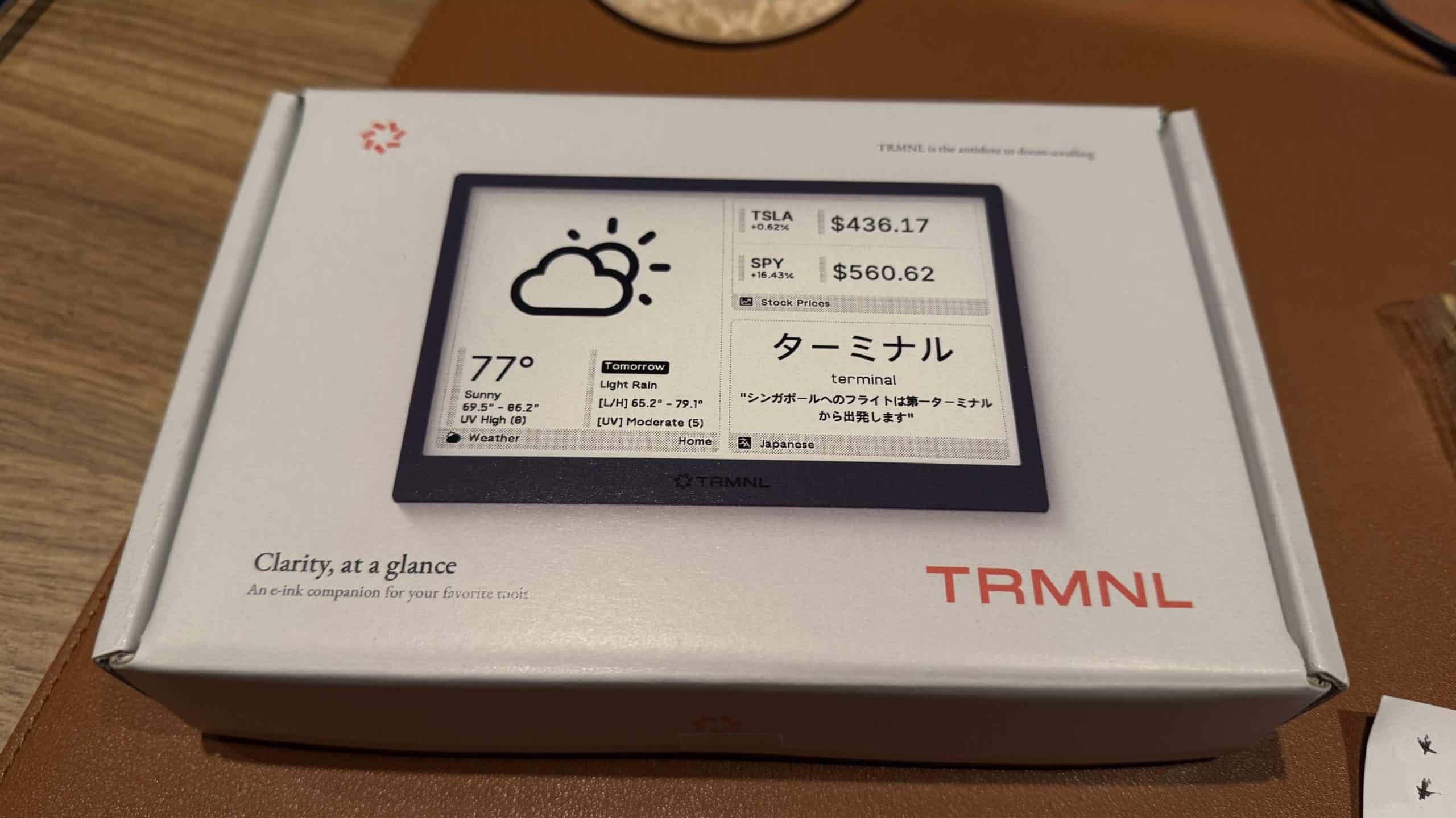 Dès le déballage, on sent que le TRMNL OG a été pensé pour s’effacer. Le boîtier est d’une simplicité désarmante : léger, sobre et doté de finitions très propres. Ce qui frappe immédiatement, c’est la qualité de l’écran E-ink. Contrairement à une tablette ou un cadre photo numérique classique, il n’émet aucune lumière. La texture de l’affichage rappelle vraiment le papier, ce qui donne un aspect très organique à l’objet.