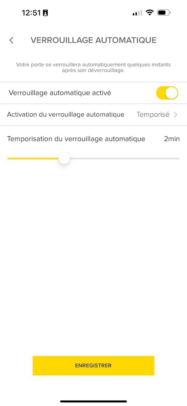 J’ai pour ma part configuré le système de déverrouillage automatique, permettant de déverrouiller la porte quand vous arrivez dans la zone GPS de votre maison. C’est vraiment génial car lorsqu’on arrive avec les bras chargés, on peut directement entrer en poussant à peine la porte.