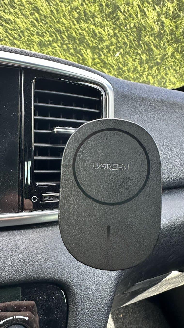 Pour chaque voyage, j’utilise Apple CarPlay : j’adore l’interface et en plus, le système gère un éspèce de double écran avec l’iPhone. Afin de ne pas avoir l’iPhone qui traine, j’utilise un support qui se fixe sur les grilles d’aération pour mon iPhone. Encore une fois, j’utilise un accessoire UGREEN car il permet de recharger en même temps mon téléphone avec la recharge sans fil. Attention qu’il faut avoir une voiture assez récente, sur certaines, le CarPlay ne fonctionne qu’avec le câble USB branché.