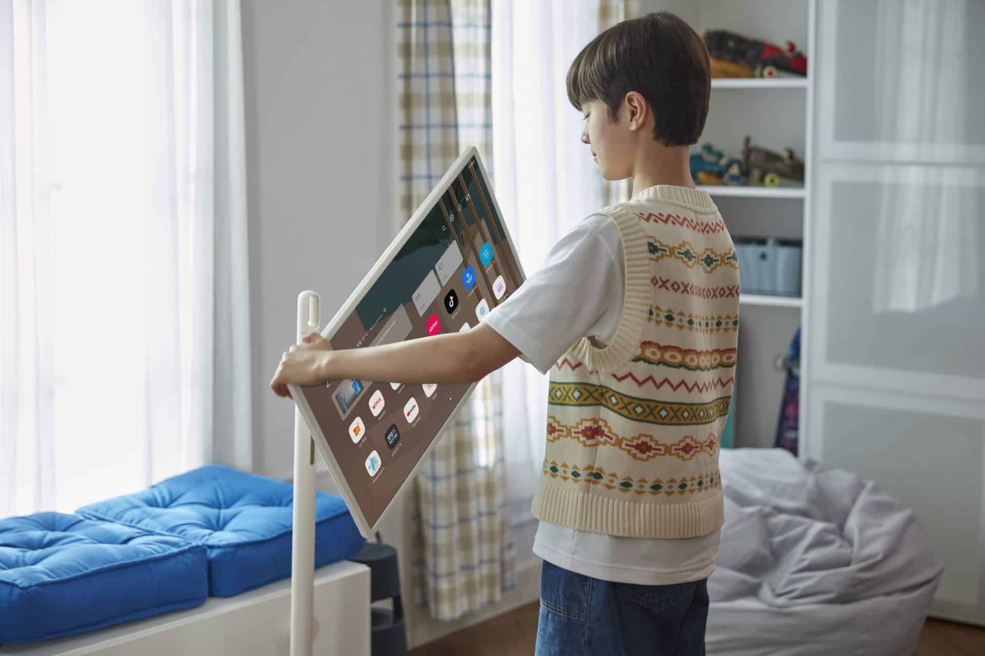 Le LG StanbyME offre une commodité et un confort de visionnement inégalés grâce à sa conception ergonomique. L’écran peut pivoter, s’incliner et tourner en orientation paysage ou portrait. La hauteur réglable permet ainsi au spectateur de personnaliser sa position en fonction de l’utilisation, assurant un confort optimal lorsqu’il est allongé dans son lit, qu’il cuisine ou qu’il se prélasse dans le canapé du salon. La diffusion de contenu sur le LG StanbyME est un jeu d’enfant grâce à la mise en miroir d’écran mobile qui fonctionne aisément avec les derniers smartphones Android et iOS et la technologie NFC. Un socle amovible permet à l’utilisateur de placer un téléphone sur le LG StanbyME afin de créer une solution rapide et sécurisée pour les appels vidéo, les cours en ligne et le contenu en streaming. Les utilisateurs peuvent également connecter leurs ordinateurs portables ou PC à StanbyME au moyen d’une connexion filaire (USB, HDMI) ou sans fil.