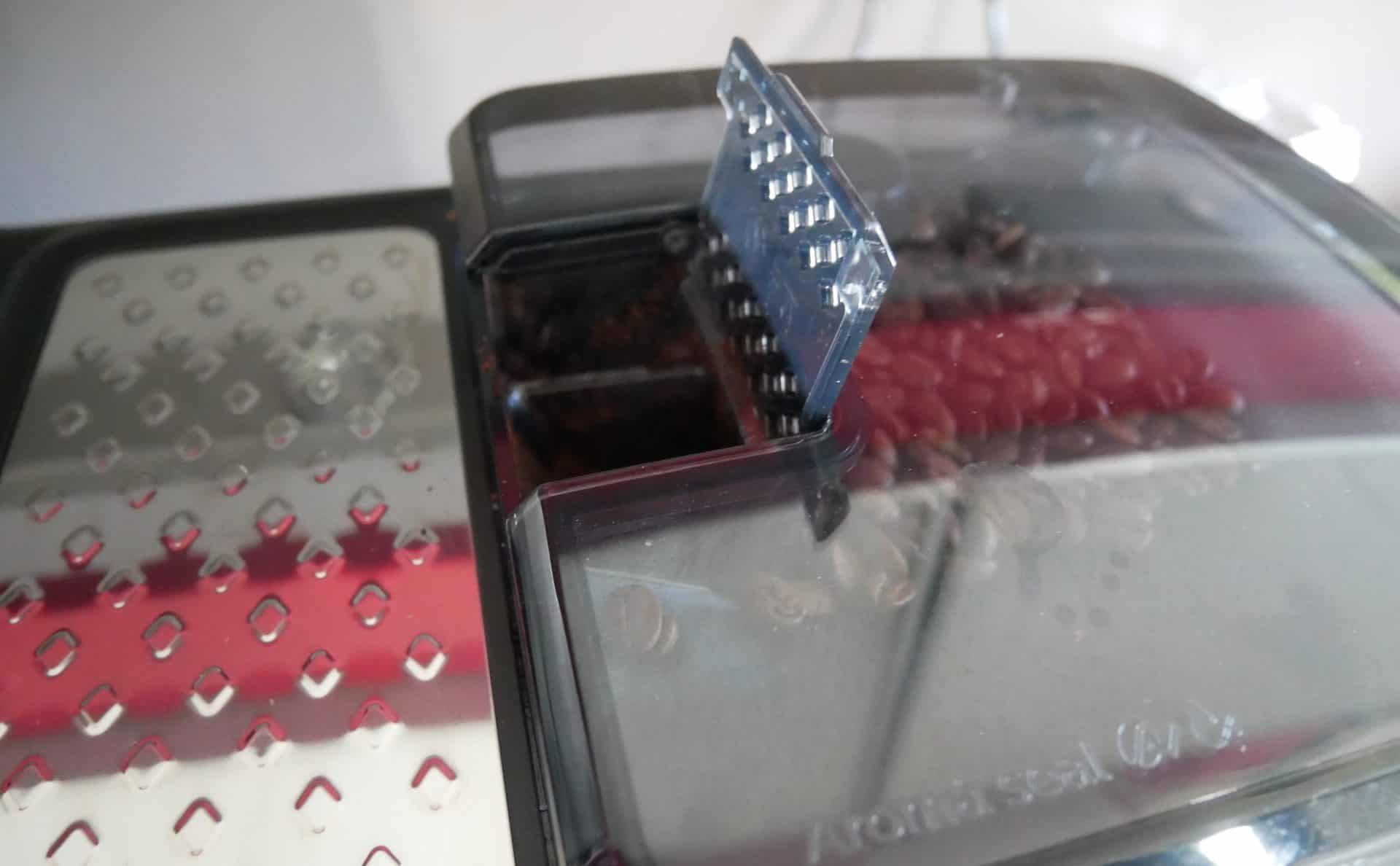 Pour terminer avec les caractéristiques, sachez que si vous souhaitez utiliser un café pré-moulu, c’est possible via le petit réservoir spécial situé au-dessus. Il faudra cependant, pour chaque nouveau café, utiliser la dosette fournie pour y mettre du café.