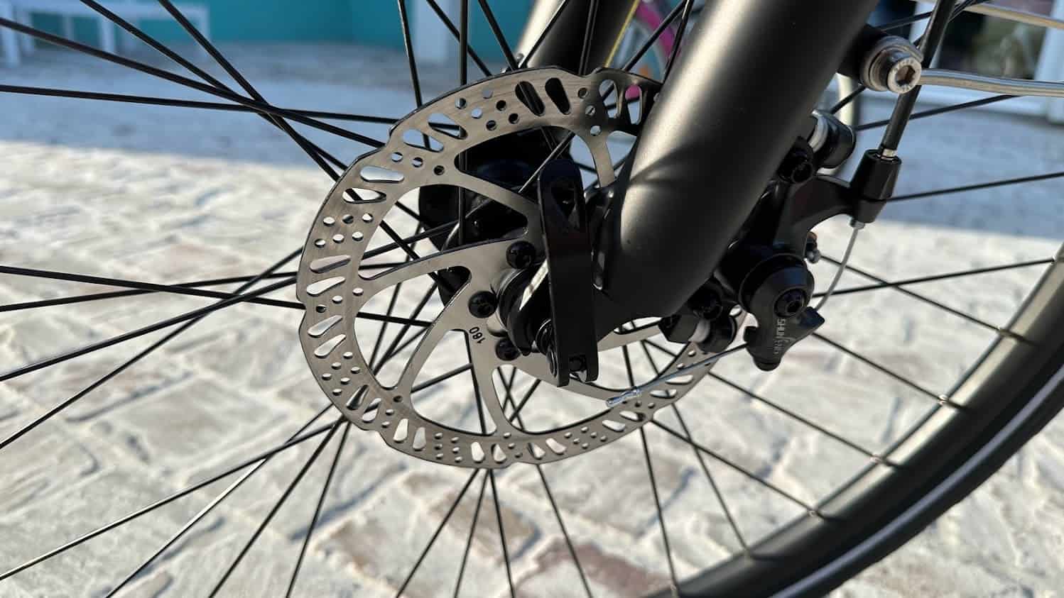 Les freins à disques sont de type mécaniques et vous avez donc un freinage «à frottement» ne procurant pas un effet instantané comme sur les modèles haut de gamme.
