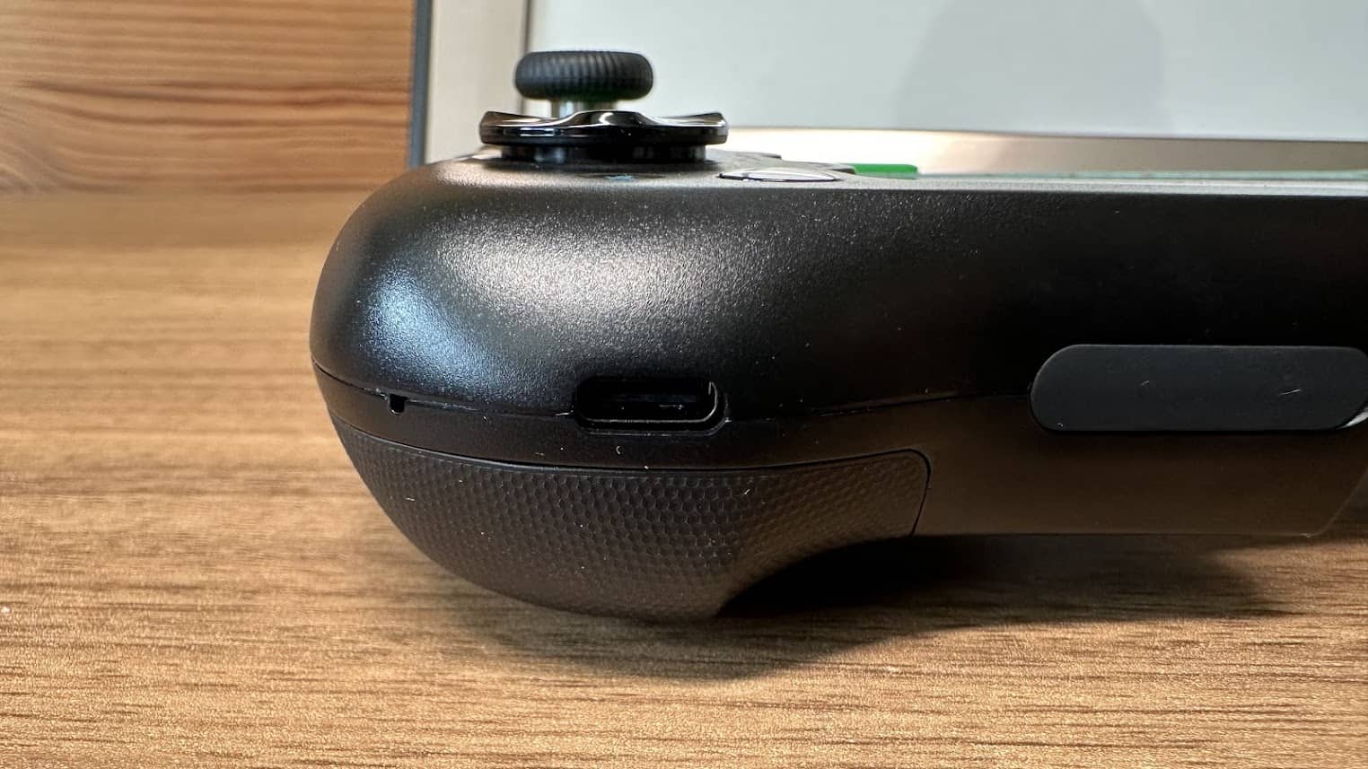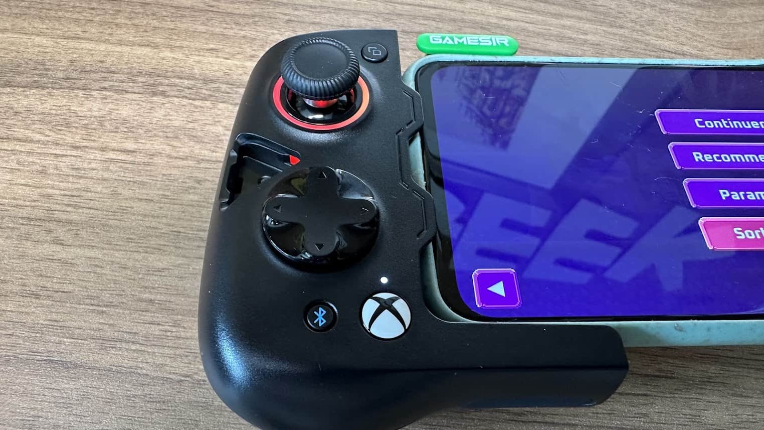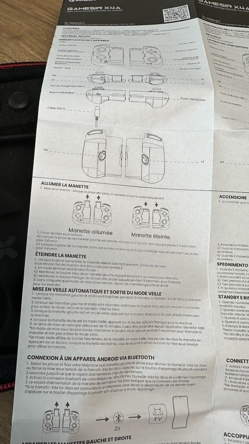 Contrairement aux autres manettes se raccordant directement en USB-C, il faudra recharger cette manette et établir une connexion Bluetooth (garantie faible latence). C’est un point, un peu moins pratique, mais cela permet d’utiliser la manette sur tous les smartphones, tout en laissant votre coque de protection et cela me plait ! J’ai même essayé sur mon iPhone 14 Pro Max et il rentre parfaitement ; cependant, la manette ne fonctionne pas sur iPhone après appairage.