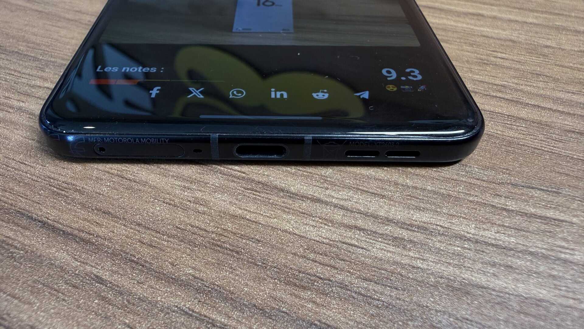 Esthétiquement, ce téléphone est une petite merveille. Sa finesse est tout simplement impressionnante : seulement 7 mm d’épaisseur pour un poids plume de 186 g. En main, la sensation de légèreté est immédiate et les bords affinés me rappellent avec nostalgie la grande époque des premiers Samsung Edge. Motorola a réussi à conserver une identité propre dans un marché saturé de clones, notamment grâce à un dos très travaillé qui ne ressemble à rien d’autre. La prise en main est excellente, le téléphone se loge naturellement dans la paume malgré son grand format.