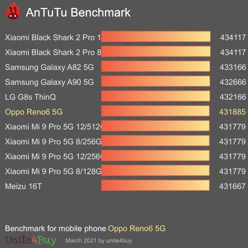 Le Oppo Reno6 5G embarque un processeur MediaTek Dimensity 900 qui se veut polyvalent. Même si les résultats de différents benchmarks le placent en deçà du Dimensity 1200 du même fabricant ou du Snapdragon 778 de Qualcomm, il fait tout de même mieux que les Snapdragon 750 ou 765. Là où il pêche un peu c’est au niveau de la partie graphique, n’espérez pas des performances élevées pour le gaming, ce smartphone n’est pas vraiment taillé pour cela. Sur sa gamme de prix, il reste un peu plus faible que la concurrence de ce point de vue. On peut noter néanmoins dans les points positifs sa bonne capacité de dissipation thermique et une excellente gestion de l’autonomie.