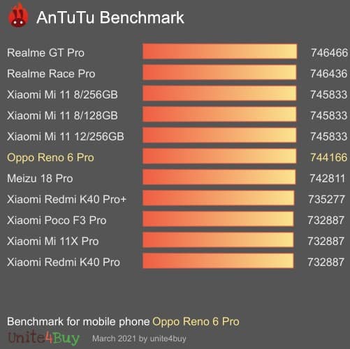 L’Oppo Reno6 Pro 5G embarque un SoC Qualcomm Snapdragon 870 doté de 8 cœurs avec en parallèle le GPU Adreno 650. Il est doté de 12 Go de RAM LPDDR4x et d’un stockage de 256 Go ultra rapide UFS 3.1.