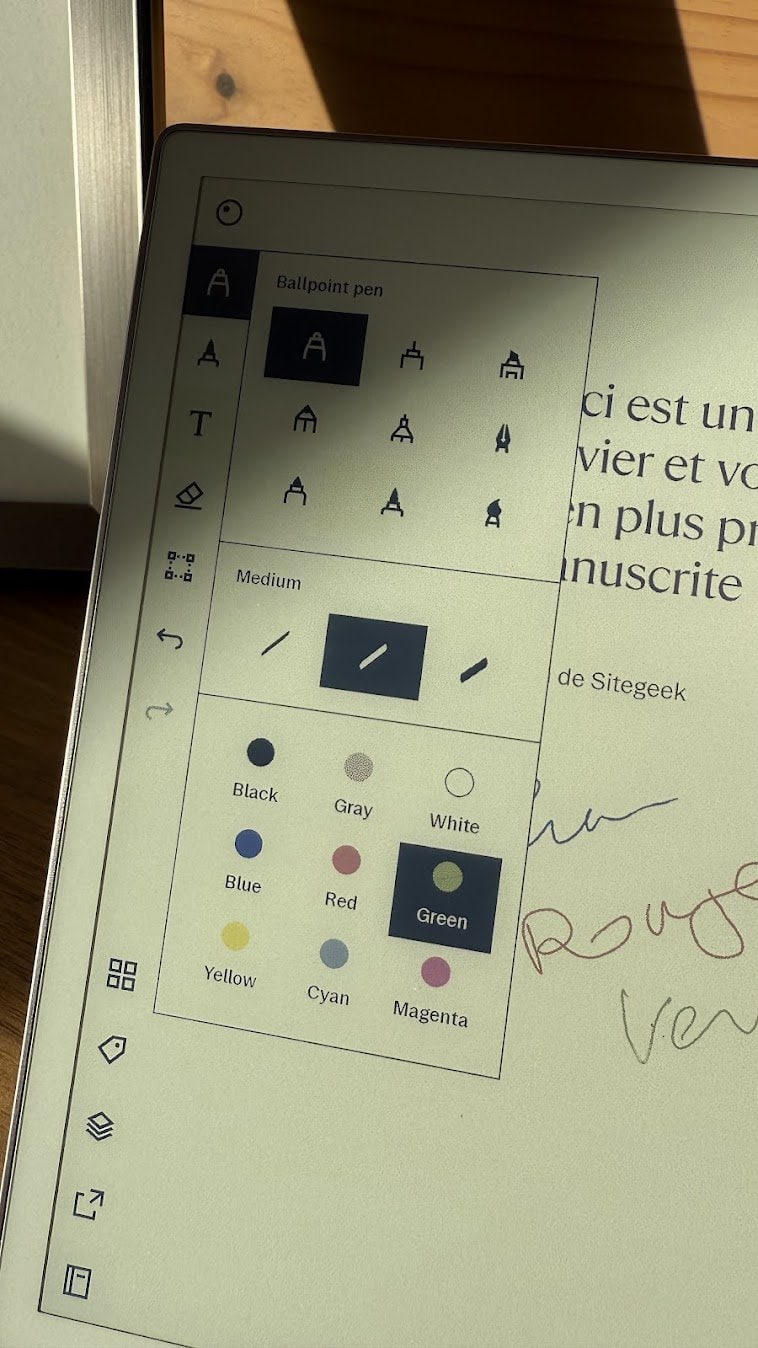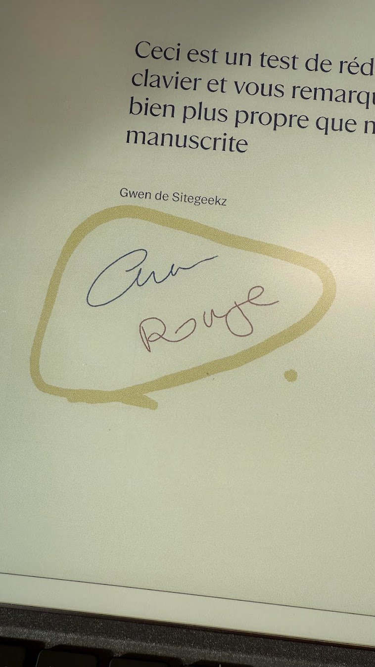 Le reMarkable Pro reste fidèle à sa réputation de Rolls-Royce des appareils de prise de notes. La possibilité d’écrire en couleur est un vrai plus pour mettre en forme vos notes et faciliter leur relecture. Les couleurs ajoutent une dimension visuelle qui permet de hiérarchiser les informations et de rendre les notes plus dynamiques et compréhensibles. Cette fonctionnalité est particulièrement utile pour les schémas, les mind map, ou simplement pour différencier les éléments importants. Toutefois, la technologie a encore ses limites, les couleurs restent un peu fadent et vous ne retrouverez pas le rendu d’un iPad ; et c’est bien logique.