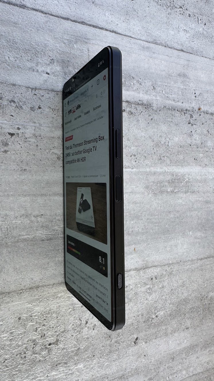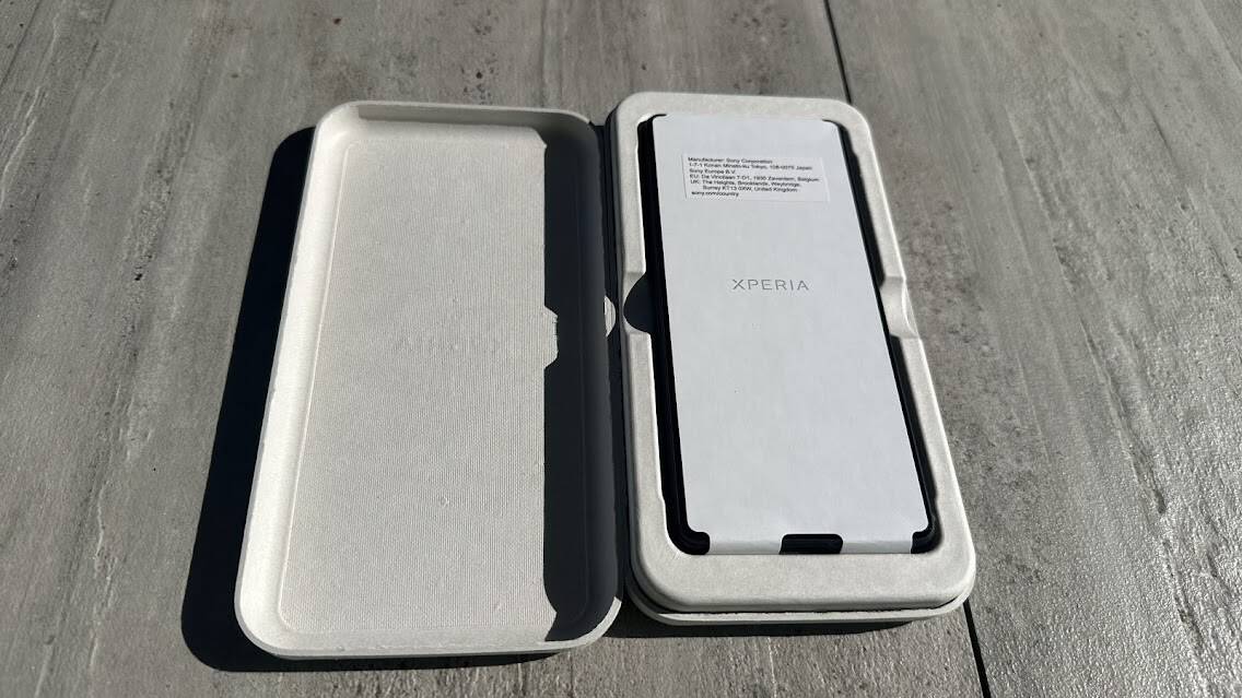 Lors du déballage du Sony Xperia 1 VI, ce qui interpelle le plus : c’est l’aspect minimaliste du packaging. On retrouve le téléphone et le téléphone seul, dans une coque visiblement faite à partir de papier recyclé et un petit manuel : pas de câble, ni d’écouteurs, ni de chargeurs. J’apprécie tout particulièrement cette démarche écolo qui devrait être généralisée aujourd’hui.
