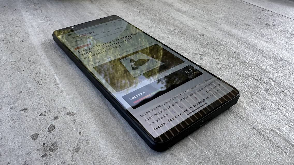 Lors de la première prise en main de l’appareil, j’ai découvert un appareil très beau, aux angles affirmés et à l’allure pro et même un peu vintage. Il est assez léger (192gr) malgré son grand écran de 6,5 pouces, tient bien dans la main. Le format allongé 21:9 est laissé de côté pour un 19,5:9 bien plus agréable. Je trouve le revêtement antidérapant de l’arrière très agréable.