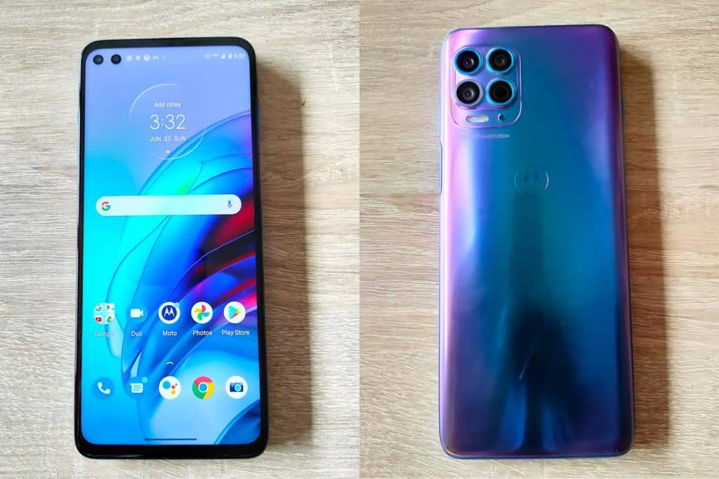 Avec un prix tournant aux alentours des 550 euros, le nouveau Motorola moto g100 est un smartphone milieu de gamme qui affiche de très belles performances. Et effet, avec son processeur Snapdragon 870 5G et ses à 8 Go de RAM, il vient se positionner comme étant le moto g le plus puissant de sa catégorie. En mains, il confère immédiatement une impression de robustesse. Son poids de 207 g, son épaisseur de 9,7 mm et ses larges bordures y sont pour beaucoup. La face arrière est quant à elle en plastique, ce que je trouve mieux que du verre puisque c’est nettement moins fragile. Finalement, notons que le moto g100 est disponible en trois coloris différents (bleu, blanc et gris) arborant chacun un effet diapré très à la mode en ce moment.