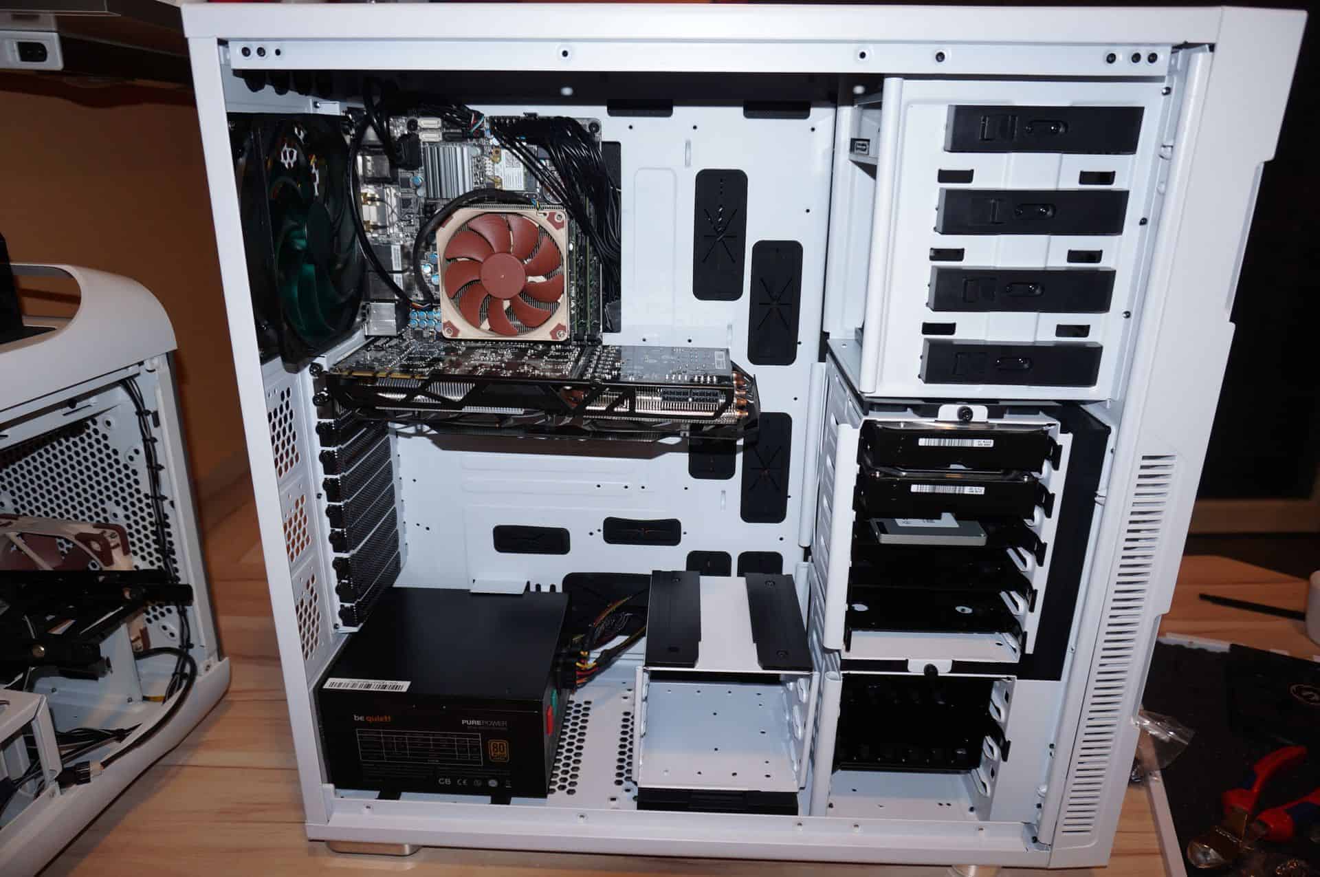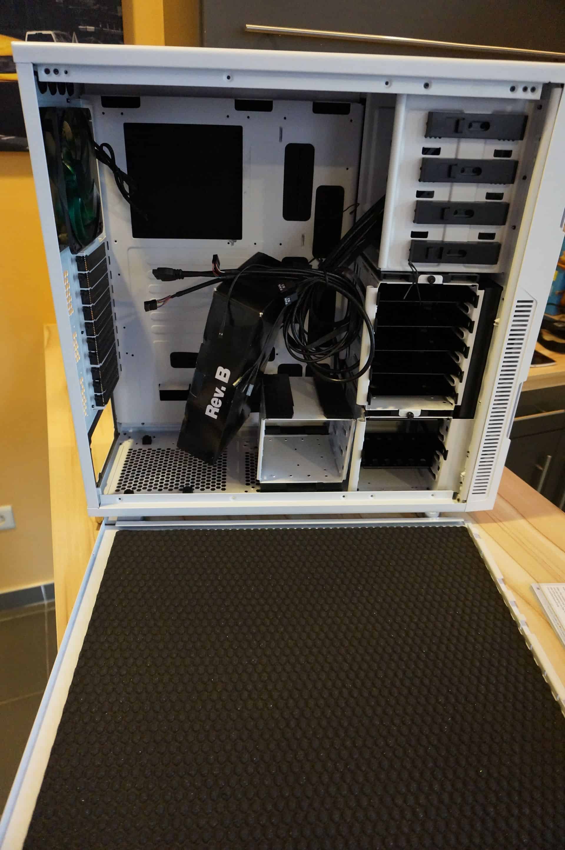 Pour tester cette tour hors norme, je me suis lancé dans le déménagement de ma configuration mini-ITX hébergée dans une Bitfenix Prodigy (qui avait de plus en plus de mal à ventiler depuis l’ajout de ma GTX 780).