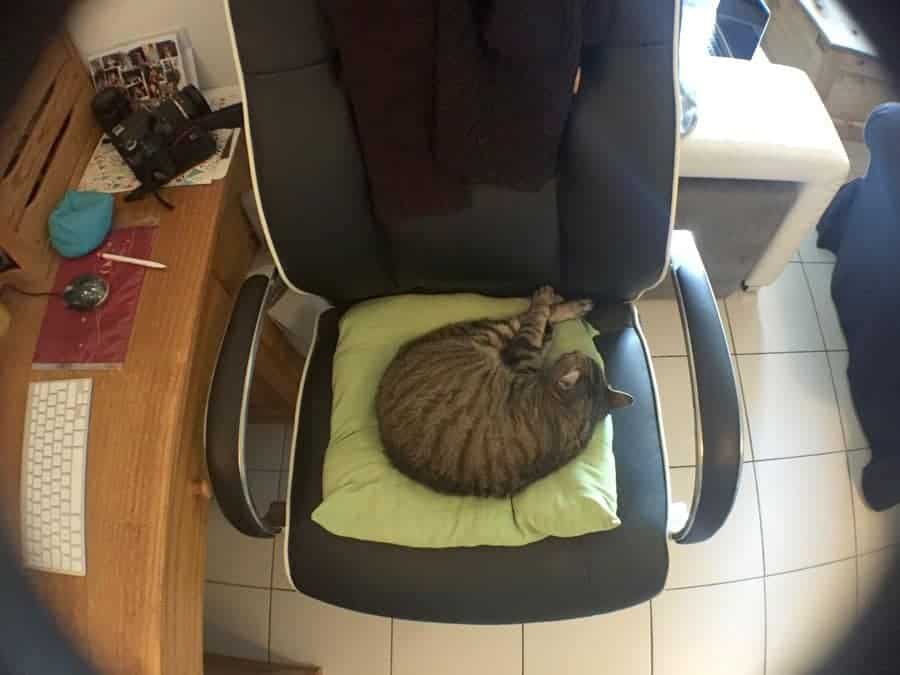 C’est intéressant, car on peut vraiment capter des détails impossibles sans la lentille. Comme une touche d’ordinateur, les épines d’un cactus… Bref, ça fonctionne bien. Et le résultat a quelque chose de chic. Par contre, c’est un peu déroutant : il faut presque coller le capteur à l’objet pour obtenir une mise au point. Avec le cactus, ce fut un peu… épique ! Et avec le chat…