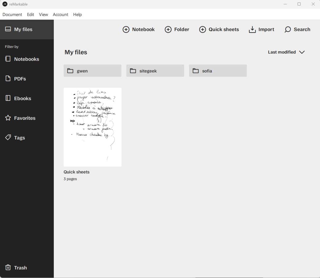 — enfin : se poserait pour moi en outre la possible nĂ©cessitĂ© d’importer (de copier-coller ?) mes anciennes (longues) notes Ă©crites sur Evernote, sur de nouvelles notes créées et rangĂ©es dans reMarkable.