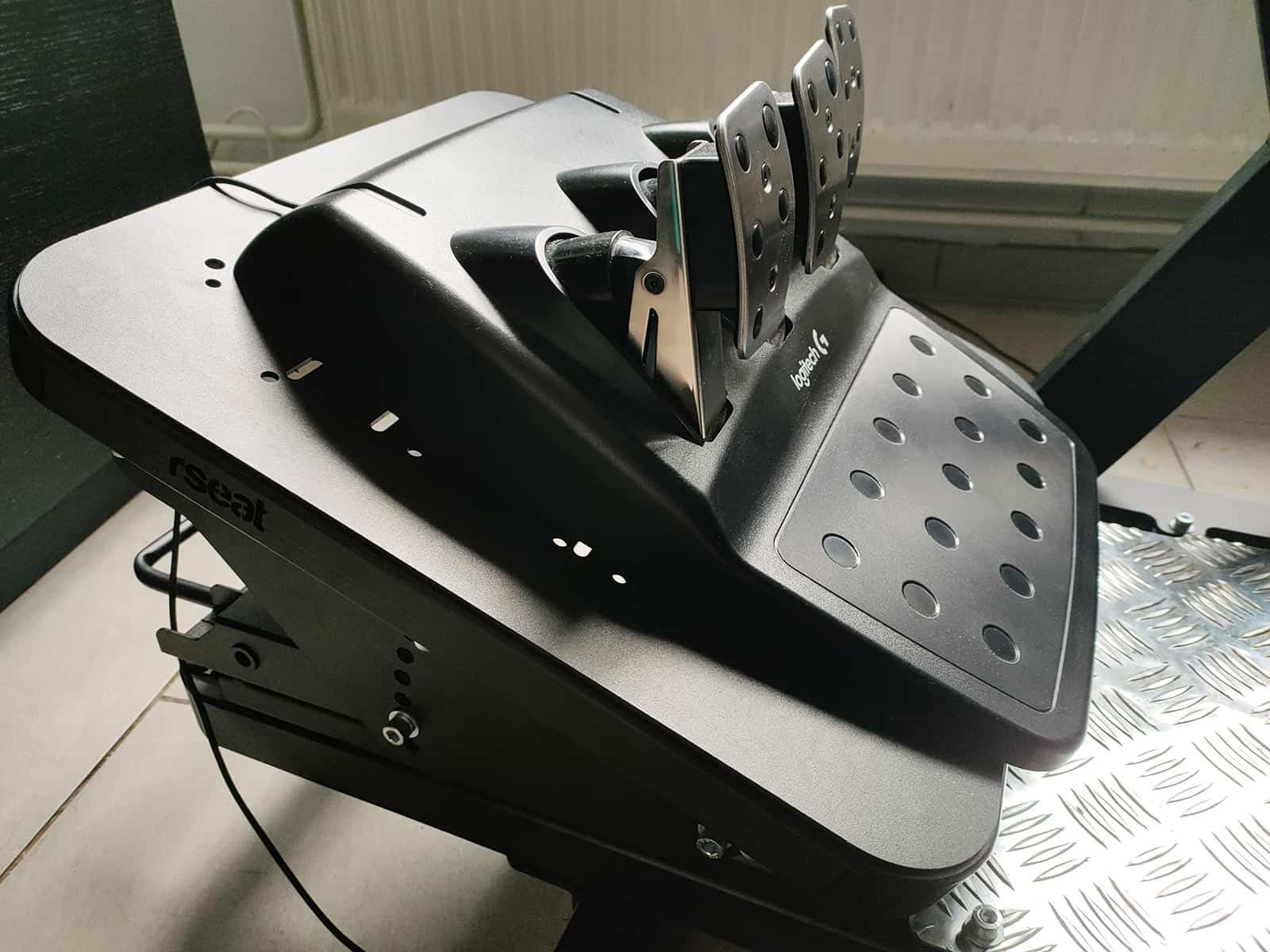 Le support du siège du châssis RSeat B1 est, lui aussi, monté sur des glissières. Comme dans une vraie voiture, il est donc possible de le faire coulisser en tirant une poignée située entre ses jambes. Grâce à 6 points d’accroche à l’avant et 4 à l’arrière, il est également possible de modifier son inclinaison. On peut donc pencher son siège en avant ou en arrière en dévissant juste 4 vis. Une fois que l’on est légèrement incliné vers l’arrière, piloter une monoplace dans F1 2021 n’a d’ailleurs jamais semblé aussi réaliste. Ces nombreux points d’accroches permettent également de modifier simplement la hauteur du siège, ce qui n’est pas négligeable si l’on préfère piloter des GT. Vous l’aurez compris le RSeat B1 est donc assez polyvalent et offre de chouettes sensations quel que soit le type de jeu auquel on voudra jouer.