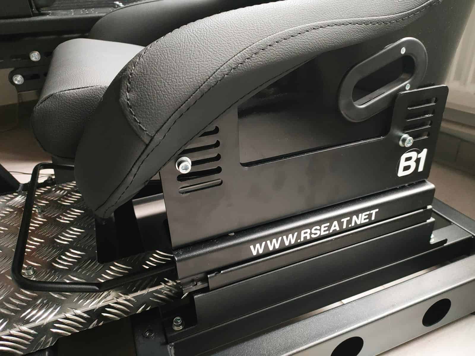 Passons à présent au siège proprement dit qui n’est pas compris avec le châssis. Il s’agira donc de choisir un modèle parmi ceux compatibles avec le B1, ce qui fera varier le prix du bundle. J’ai pour ma part reçu un très beau siège baquet noir RSeat en simili-cuir à 378 euros. Signalons au passage qu’il est aussi possible de porter son dévolu sur de véritables sièges Sparco. Pour le reste, je vous conseille de bien vérifier les dimensions des sièges avant de faire votre choix, car je dispose d’un modèle XXL et je m’y sens très légèrement à l’étroit.