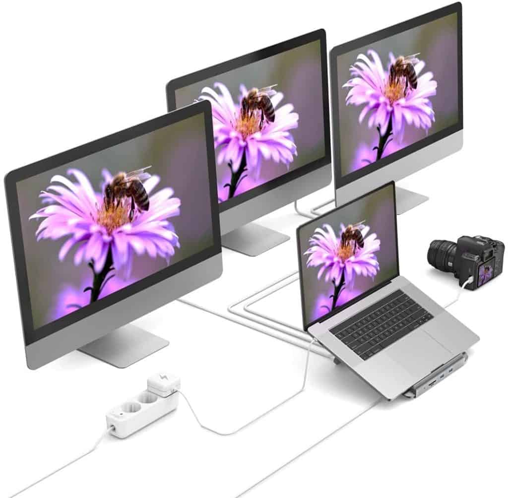 Grâce à la technologie MST (Multi-Stream Transport), vous aurez la possibilité de connecter jusqu’à 2 écrans supplémentaires. Ce qui n’est pas nécessaire pour moi mais pourrait s’avérer pratique en fonction de vos besoins. Vous disposez ainsi de 3 écrans avec celui de votre laptop pour projeter un contenu différent.