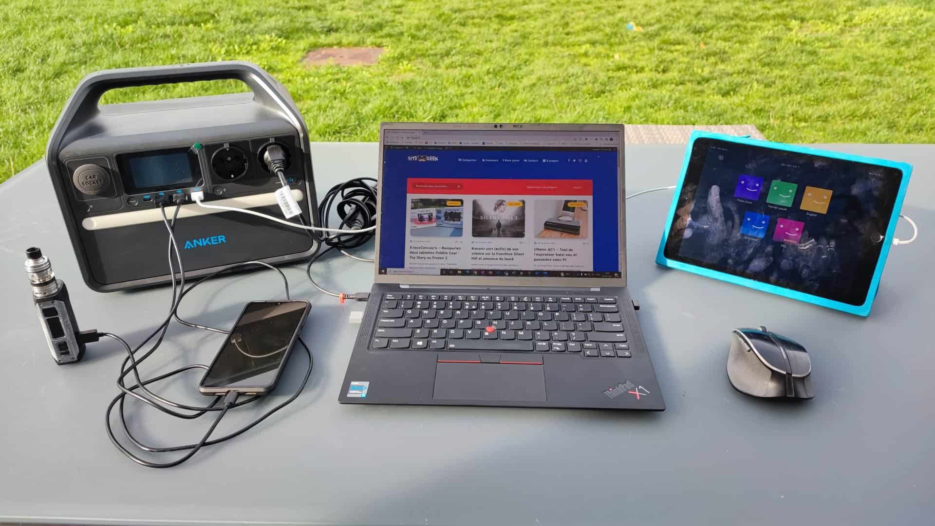 On n’a d’ailleurs pas tardé à l’utiliser à la maison pour alimenter le PC de madame pendant quelques heures afin d’éviter de devoir chipoter avec tout le setup de la maison.