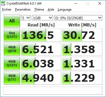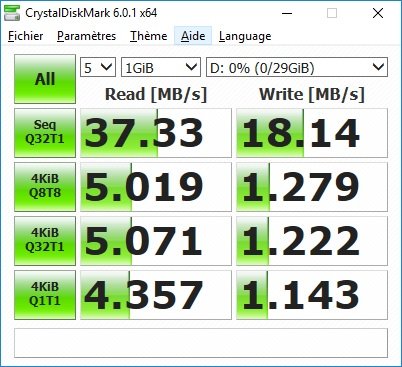 Les vitesses mesurées sont satisfaisantes sans être exceptionnelles, les clés USB les plus performantes sont jusqu’à 3 fois plus rapides.