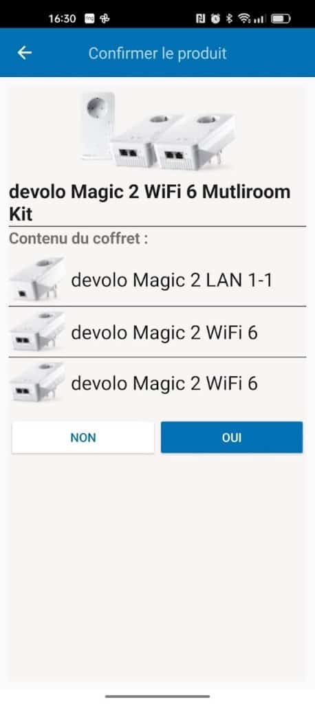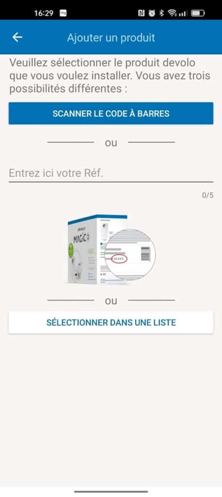 Vous choisissez le modèle de votre kit CPL sur l’application et elle vous demandera de scanner le code-barre présent sur la boîte de votre ensemble devolo. Vous devez ensuite installer les deux adaptateurs devolo MAGIC 2 Wi-Fi 6 sur des prises de courant libres.