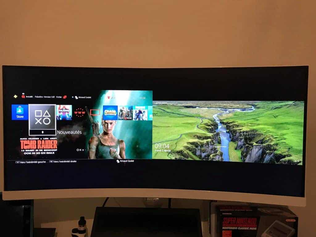 Mais je souhaitais également pouvoir brancher l’une de mes consoles afin de pouvoir jouer lorsque la télé principale était occupée ou même regarder une série entre 2 réunion ou lors d’une pause. Encore une fois, sans être parfait, le Philips 349X7 s’en sort avec plus que les honneurs. Son temps de réponse relativement élevé mais également sa définition de 3440 x 1440 pixels et surtout son option FreeSynch en font un écran qui ravira également les gamers. Sur certains jeux PS4, j’ai personnellement observé l’écran qui était un rien à la traîne et me donnait un effet de flou. Je dois cependant avouer que cela était très rare et surtout lorsqu’il y avait énormément à afficher à l’écran. Sur d’autres jeux, c’est simplement bluffant et les couleurs affichées sont superbes.