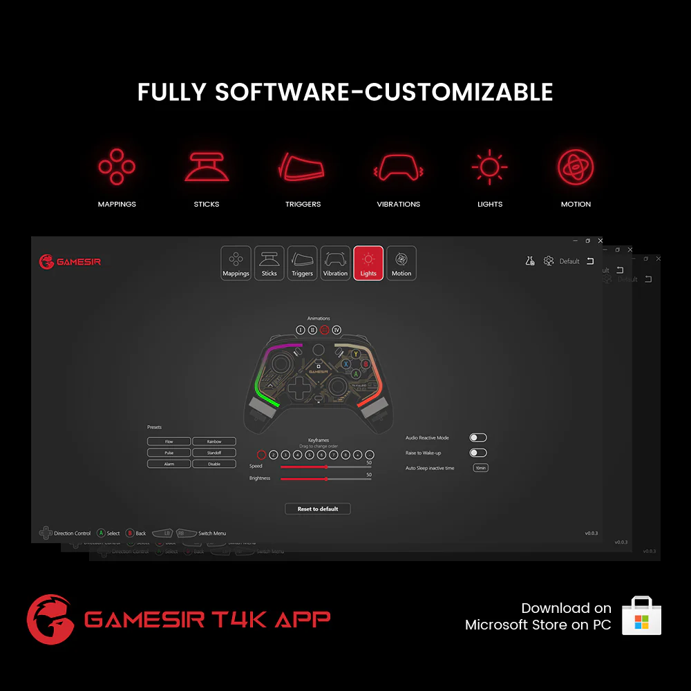 L’application Gamesir T4K App propose une interface afin de régler aux petits oignons l’ensemble des éléments de votre manette : vous pouvez par exemple : mapper les boutons, tweak le comportement du D-PAD ou ajuster les différentes zones de validations concernant la pression des sticks, des gâchettes ou des boutons dans le but de la rendre plus réactive ou non, en fonction de vos gouts, mais aussi de vos besoins de gamer.