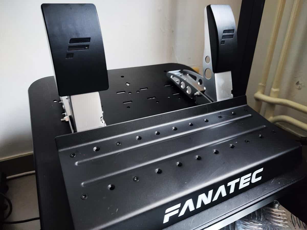 Avant toutes choses, je tiens à préciser que je n’ai pas testé le pédalier avec l’embrayage, je ne parlerai donc que de l’accélérateur et de la pédale de frein. Sachez tout de même que celui-ci peut être acheté séparément pour le prix d’environ 140 euros et qu’il peut être rajouté par la suite au pédalier. Et oui, c’est ça Fanatec : du matériel que l’on peut faire évoluer à sa guise. Revenons au pédalier qui dans l’ensemble est très correct. J’ai apprécié tout particulièrement l’accélérateur qui offre énormément de précision. En revanche, je n’ai pas trouvé la pédale de frein assez dure, mais ce n’est qu’une question de gout. Par contre, là où j’ai rencontré un réel problème, c’est quand j’ai voulu fixer le pédalier à mon cockpit qui dispose pourtant de nombreux points d’accroche. J’y suis parvenu en forçant un peu sur les vis, mais je ne trouve quand même pas ça top. À voir donc avec d’autres modèles de cockpits. Pour le reste, rien à signaler.
