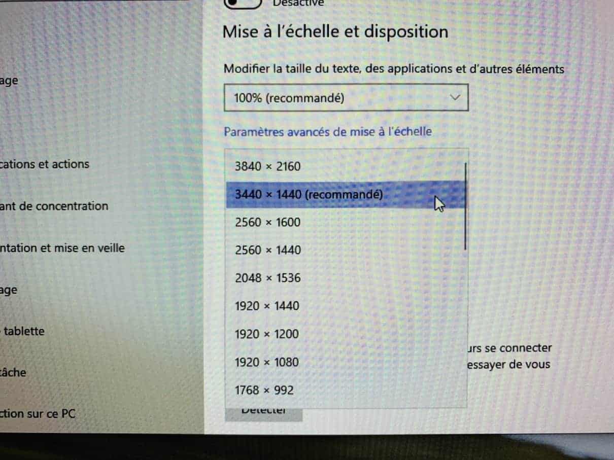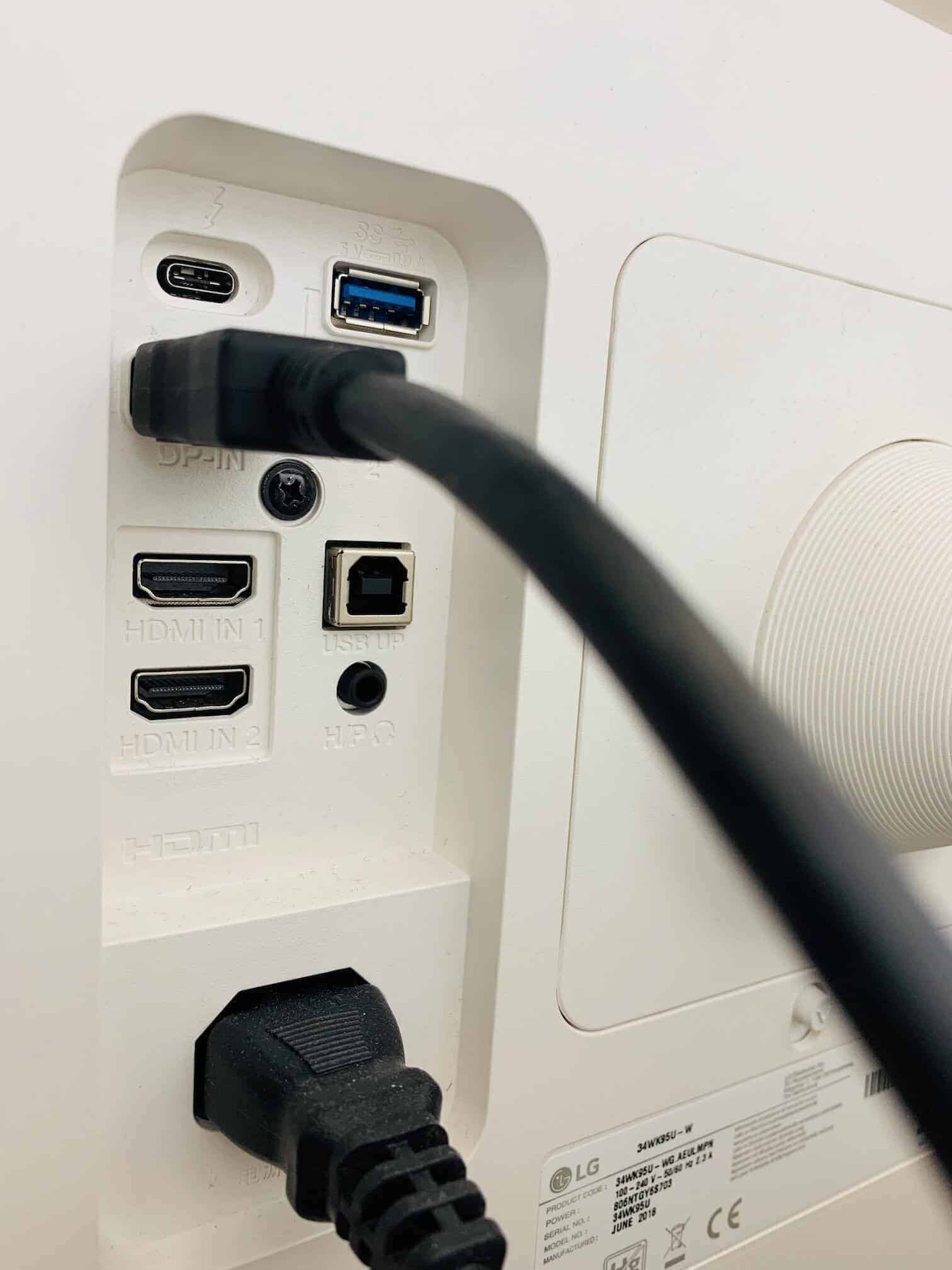 En dehors du pc, un câblage adapté sera nécessaire. Sachez donc, qu’à moins d’avoir un câble HDMI spécial, c’est vers le DisplayPort qu’il faudra vous tourner pour profiter pleinement de votre LG34WK95U. Petite anecdote, lorsque j’ai utilisé ce câble je n’avais plus le son sur mon écran. J’ai mis du temps pour comprendre mais au final j’ai découvert que dans les options de l’écran on vous proposait plusieurs types de DisplayPort (1.4 / 1.2 / 1.0). D’origine c’était sur 1.4 mais ce n’est qu’en activant le DisplayPort 1.2 que le son est enfin revenu depuis l’écran.