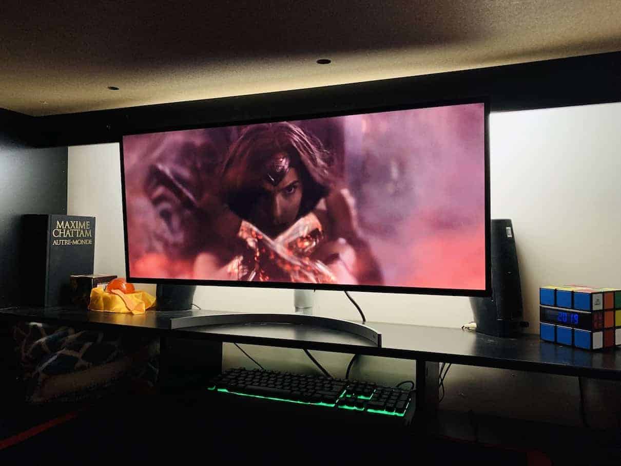 Le format adopté par cet écran est assez peu courant. Le 21:9 est pourtant bien connu dans la mesure où c’est tout simplement celui utilisé dans les salles obscures. Vous allez donc pouvoir profiter de la plupart de vos films en plein écran et ça c’est plutôt agréable. Evidemment vous devrez vous accommoder des deux bandes noires sur les séries et dessins animés qui sont faits pour les 16:9.