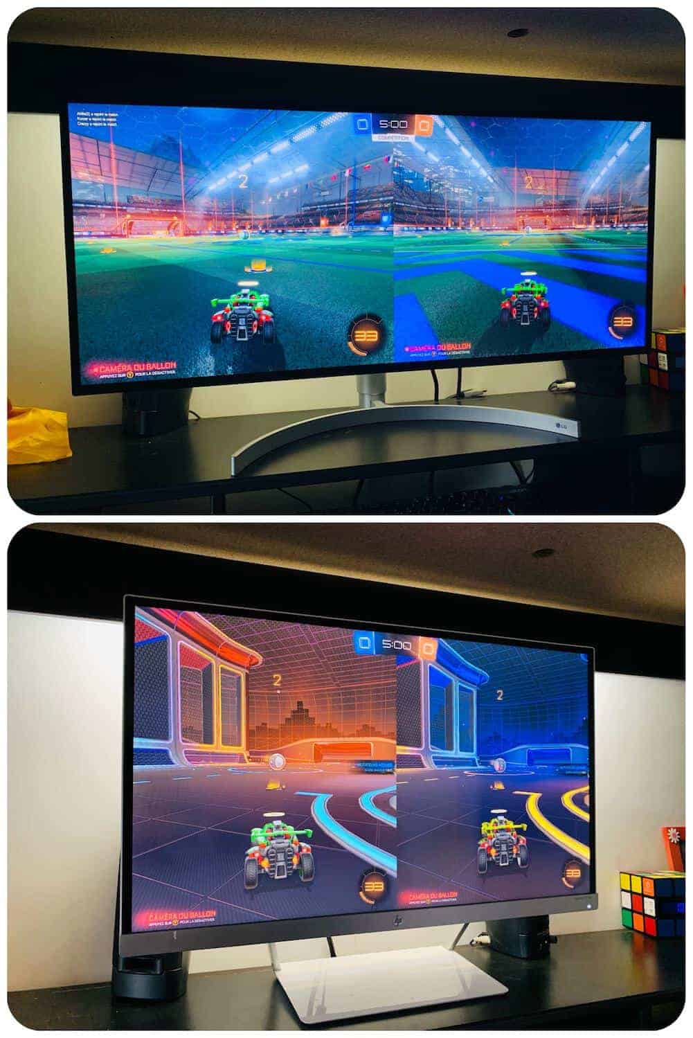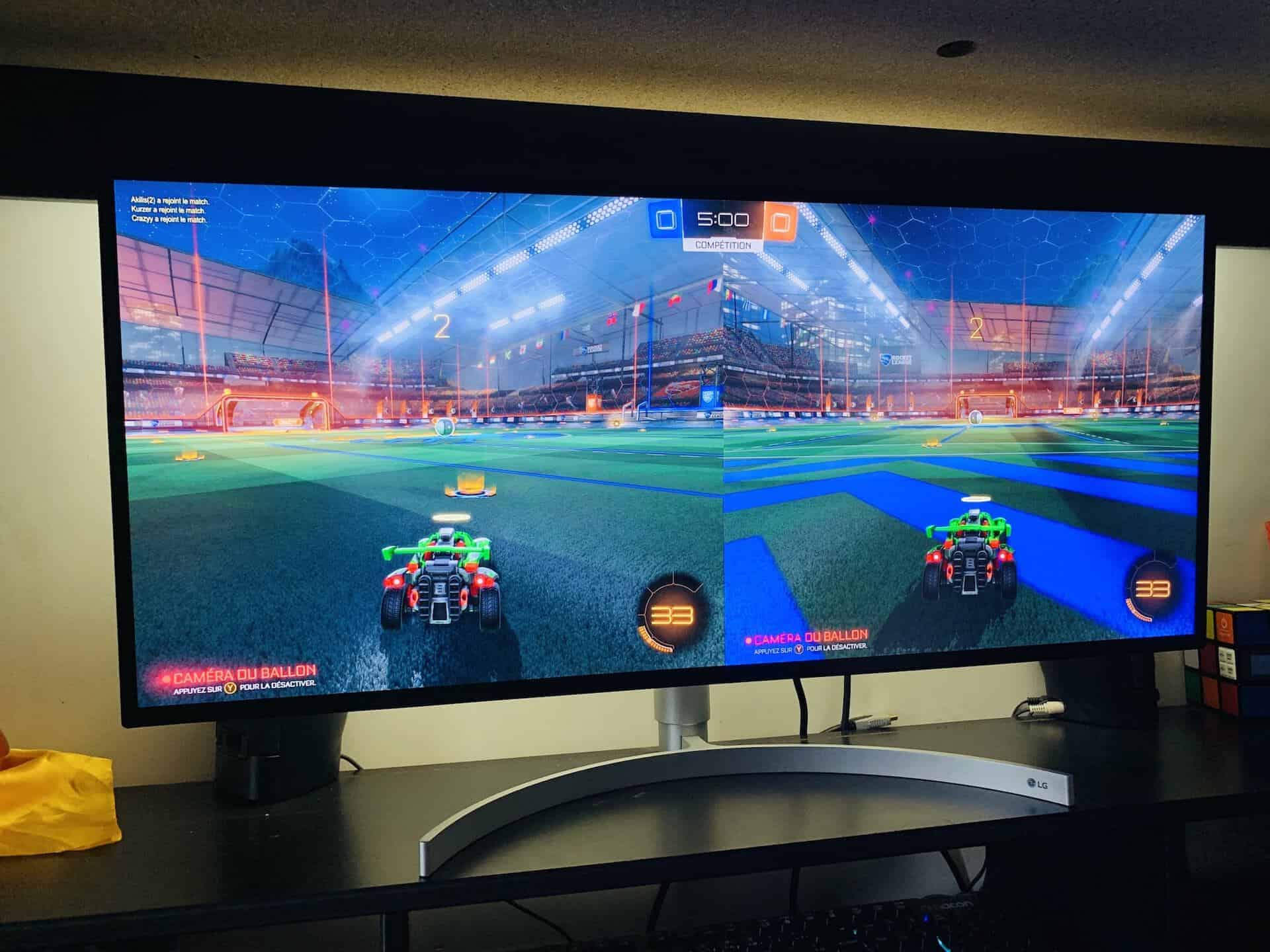 Autre avantage de ce format c’est lorsque vous aurez envie de jouer à deux en local. Le fait que l’écran soit plat et non incurvé permet aux deux joueurs d’avoir la même qualité d’image. Et la largeur de l’écran quant à elle fait en sorte que vous aurez chacun l’impression d’avoir droit à un écran 24″.