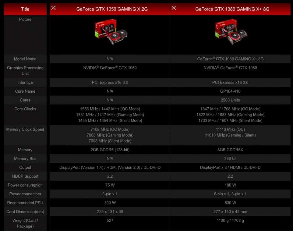 | Model Name | GeForce® GTX 1080 GAMING X+ 8G NVIDIA® GeForce® GTX 1080 |