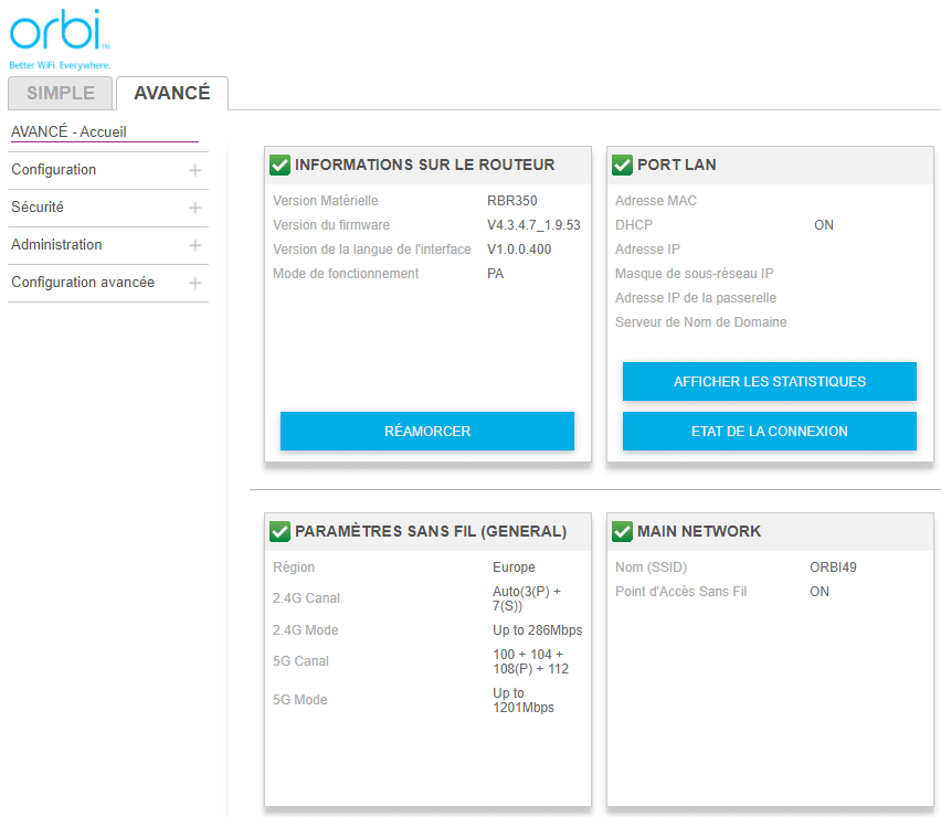 Petite remarque, vous constaterez que dans l’application mobile Orbi, il est indiqué que le réseau ORBI49 est considéré comme non sécurisé alors que je suis bien en WP3. Il va falloir corriger ça NETGEAR.
