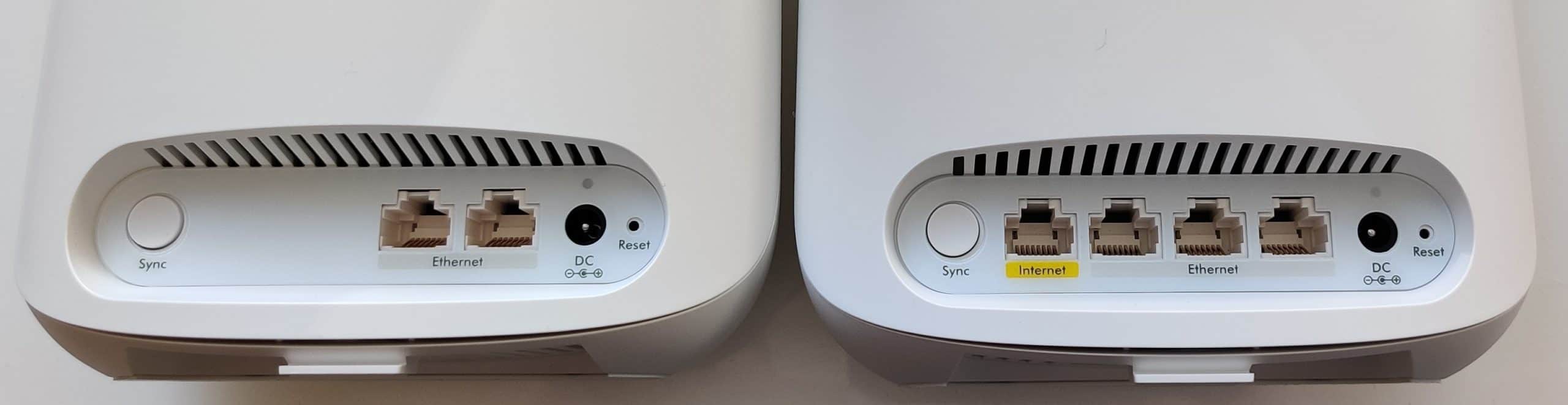 À l’arrière, on trouve, sur le routeur, un port pour la connexion internet ainsi que 3 ports Ethernet (gigabit). Chose bien plus rare et donc très intéressante avec l’Orbi RBK352, le satellite dispose, lui aussi de 2 ports Ethernet. Vous bénéficiez donc de toute la vitesse de votre réseau, mais pouvez, en plus d’étendre votre wifi, y connecter un PC en direct par exemple. Un très bon point pour NETGEAR.