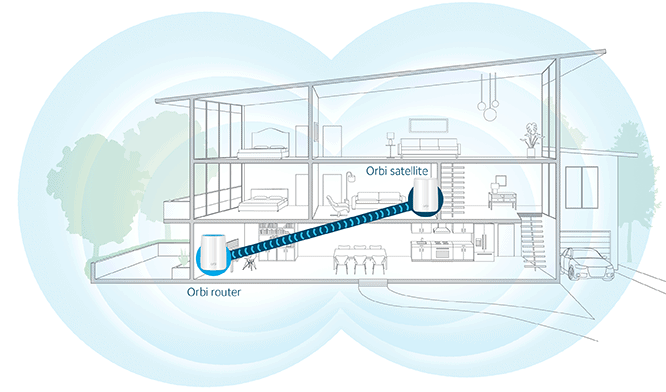 Dans le cas de l’Orbi RBK352, vous devriez pouvoir couvrir 200 m2 et passer à 350 m2 avec un deuxième satellite.