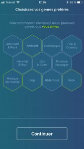 Afin de configurer votre Prizm, rien de bien sorcier. Après avoir installé leur app dédiée vous n’aurez qu’à tenter de donner une idée du genre de musique qui vous plaît le plus. Même si il faut avouer que les styles sont un peu trop complexes par moment et que j’ai trouvé le questionnaire d’entrée de Spotify plus simple avec son choix d’artistes.